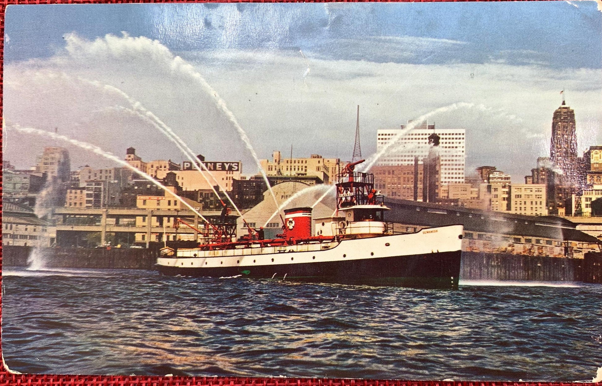 Fire Boat Demonstration on Puget Sound, Seattle, Washington - Vintage 1960s Postcard