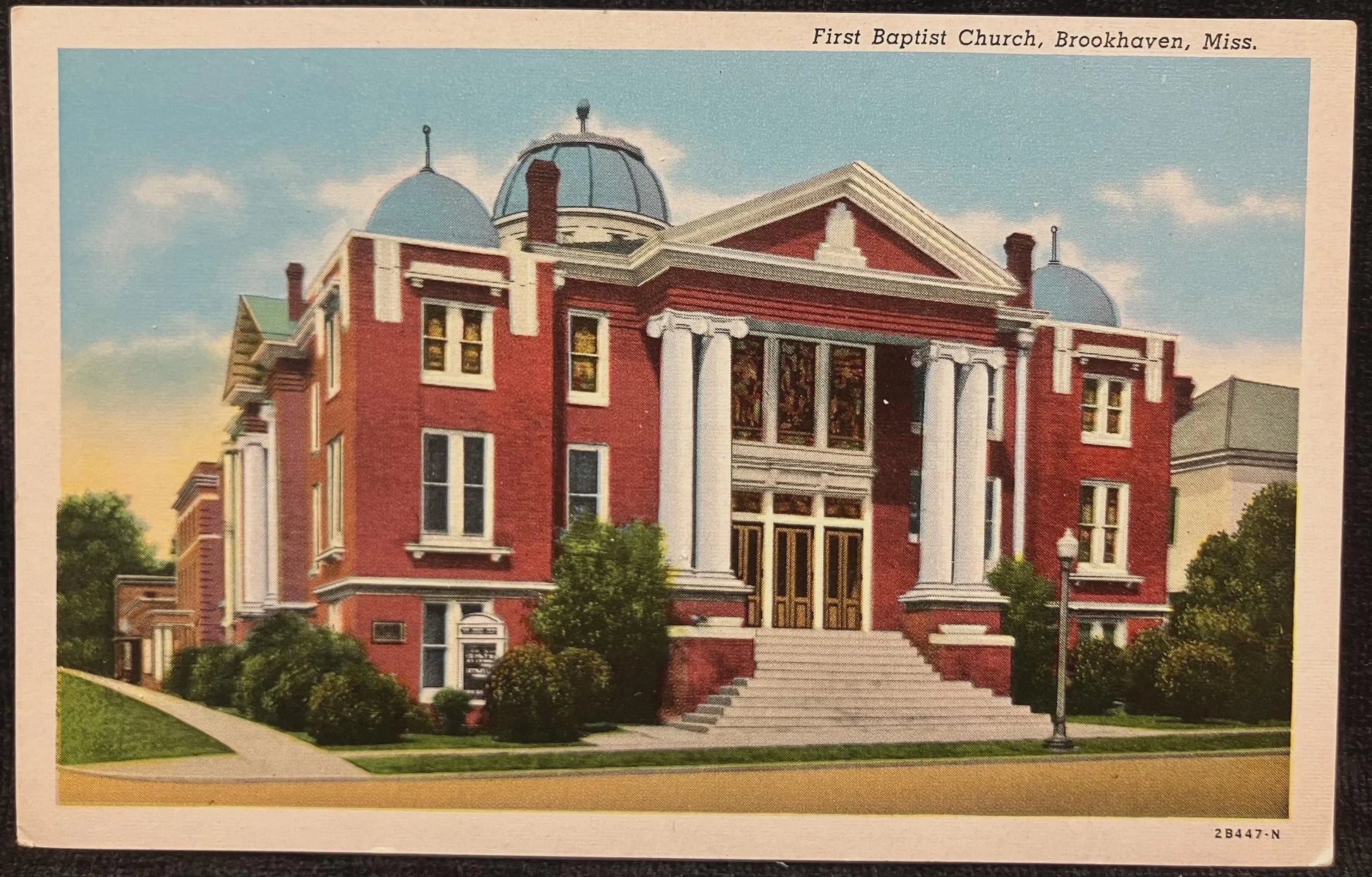 First Baptist Church, Brookhaven, Mississippi - Vintage Church Postcard