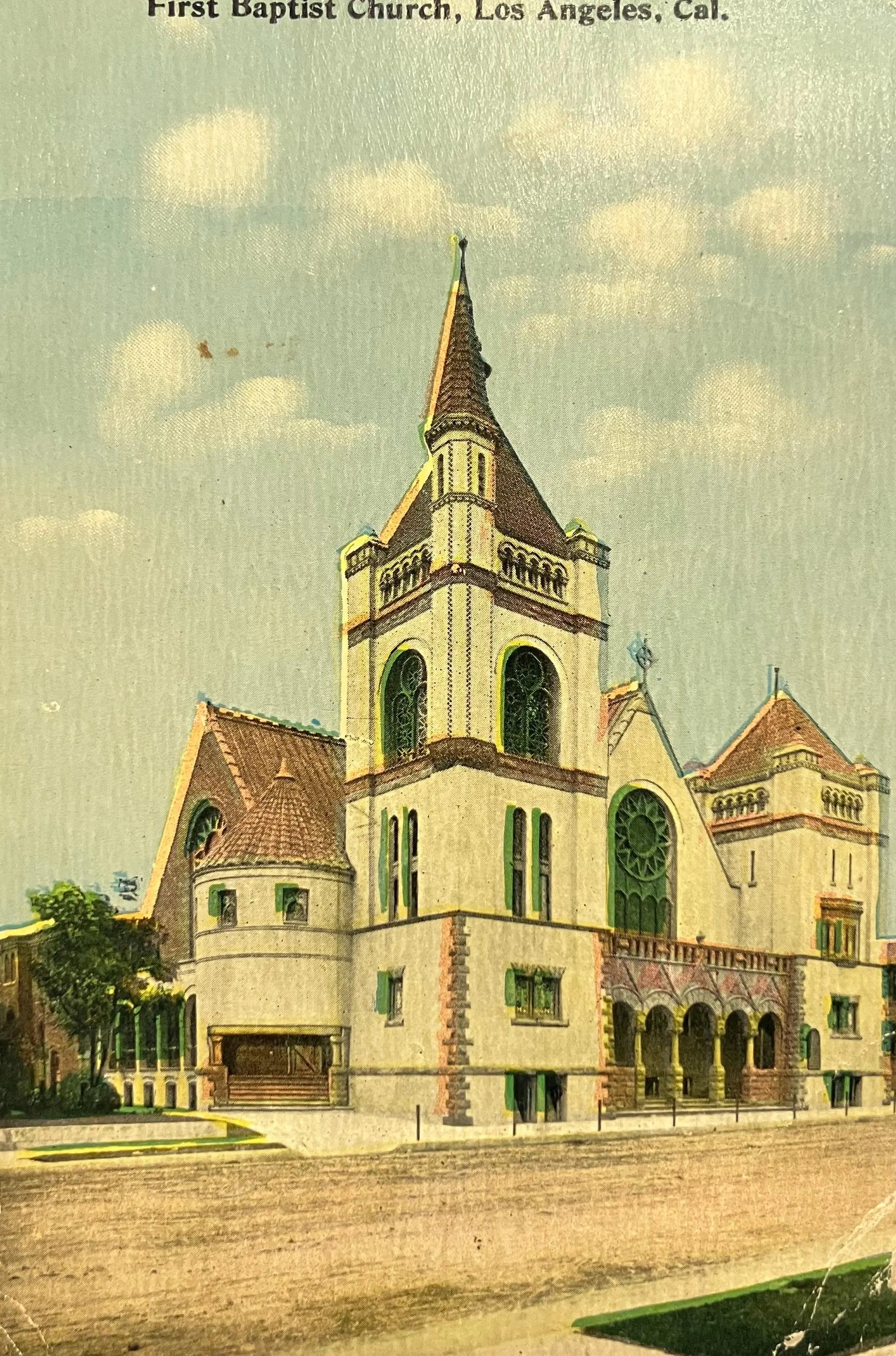 First Baptist Church, Los Angeles, California - Vintage 1910s Church Postcard