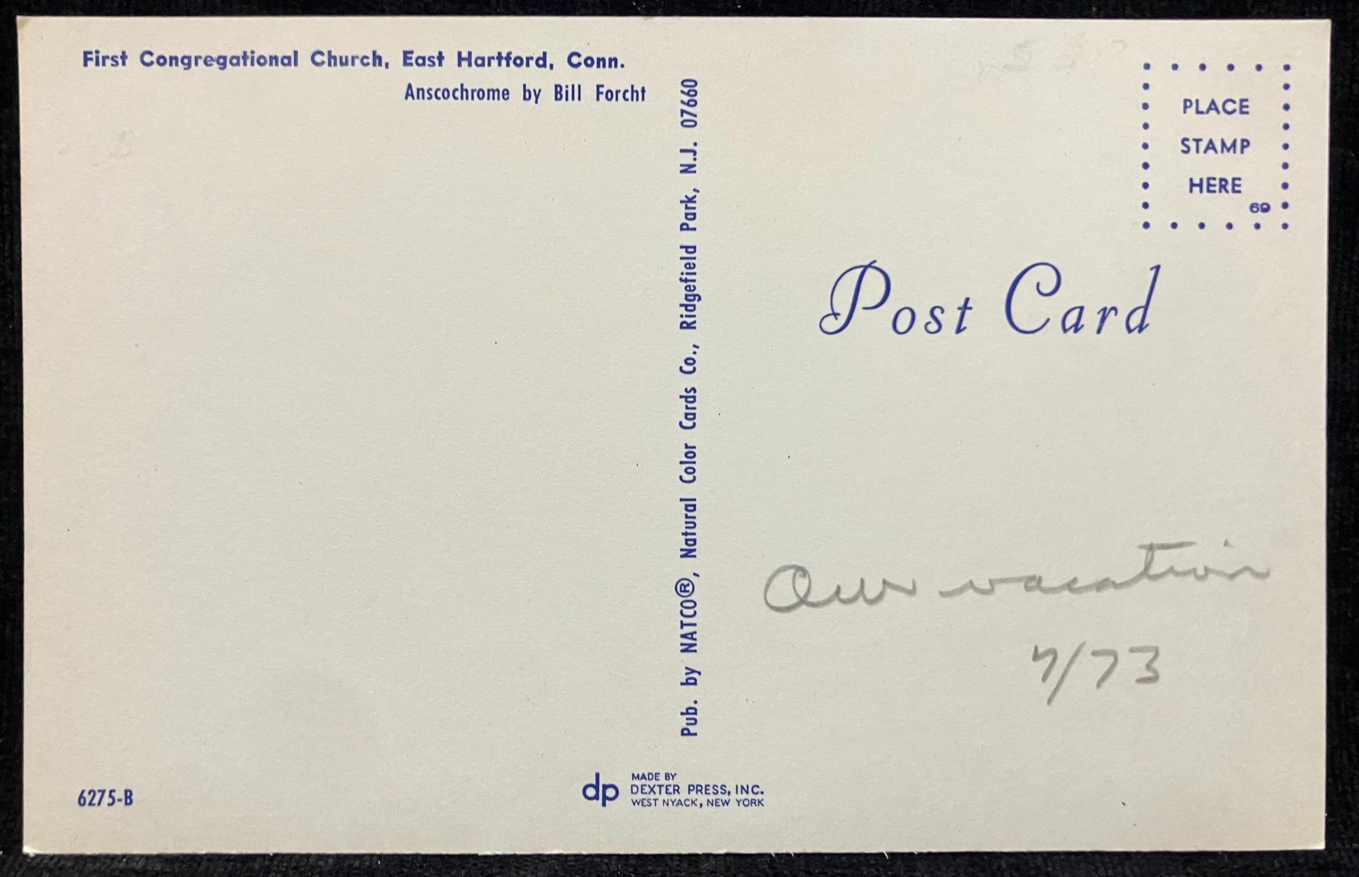First Congressional Church - East Hartford, Connecticut - 1970s Church Postcard