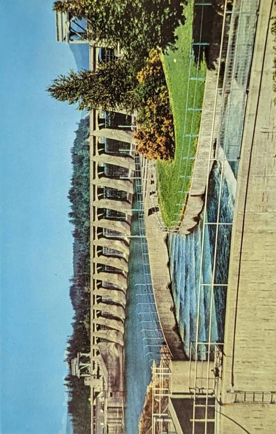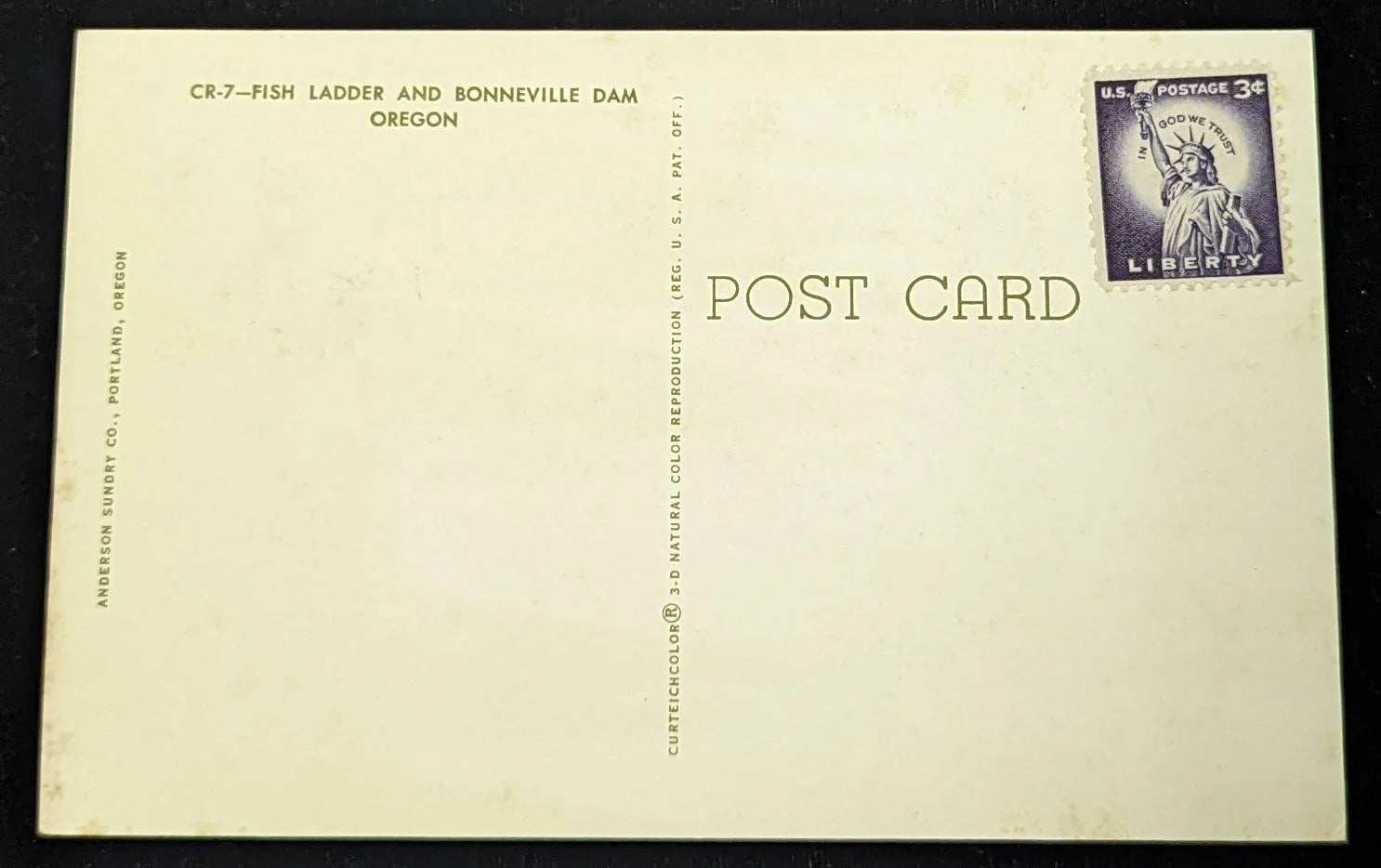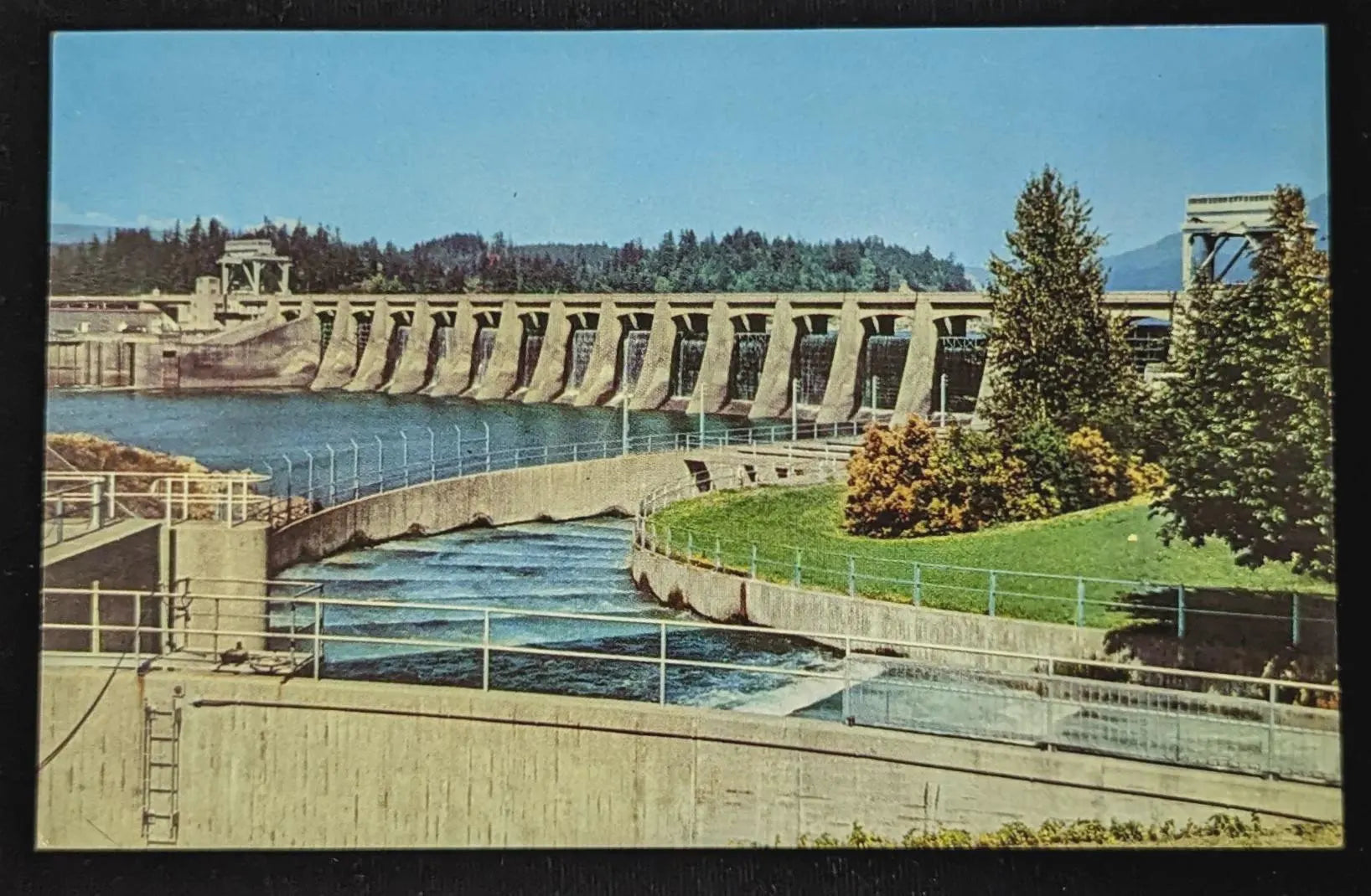 Fish Ladder and Bonneville Dam, Oregon - Vintage 1950s Postcard