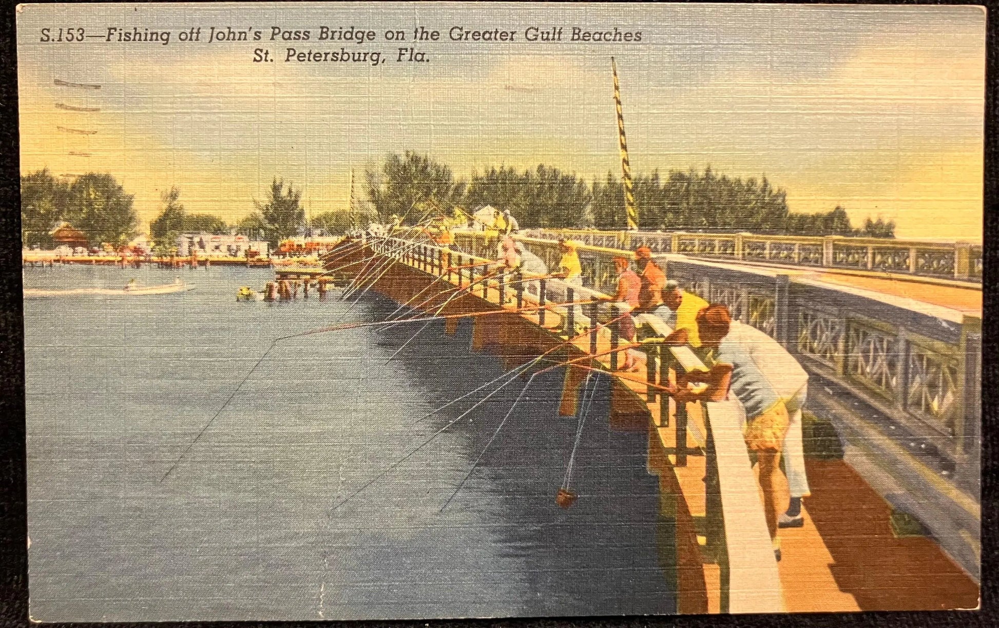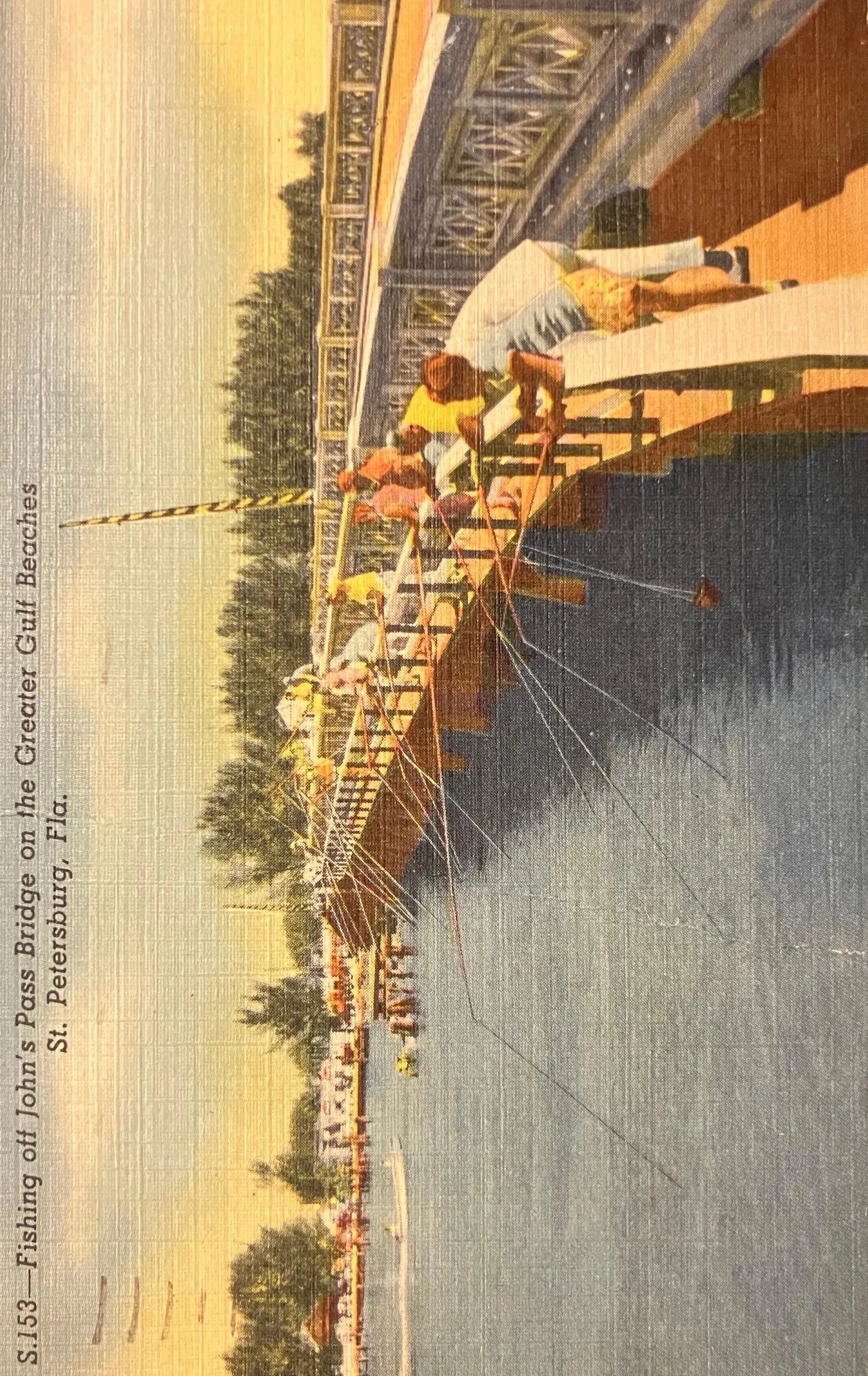 On front: Fishing off John’s Bridge on the Greater Gulf Beaches, St. Petersburg, Fla.