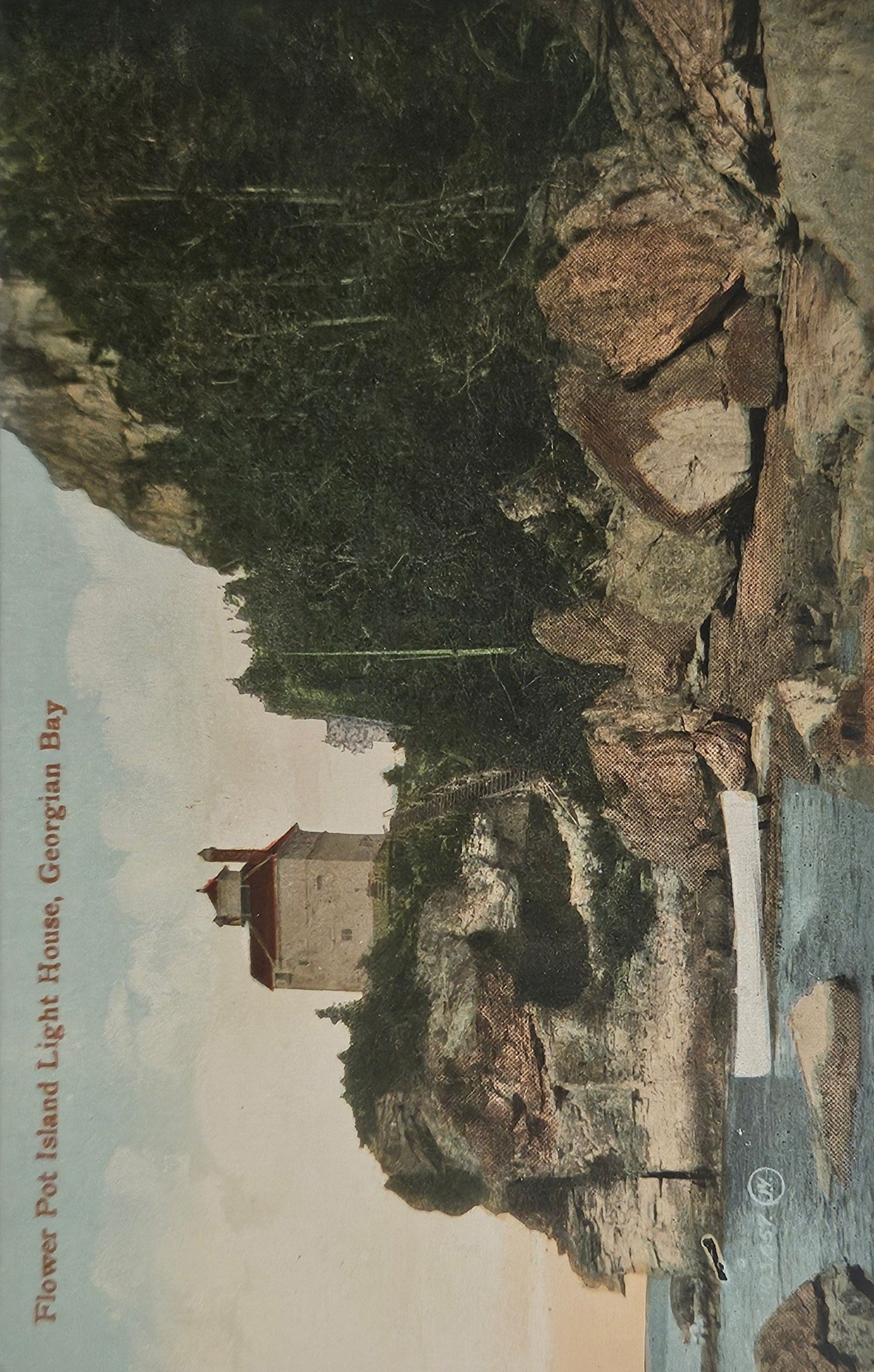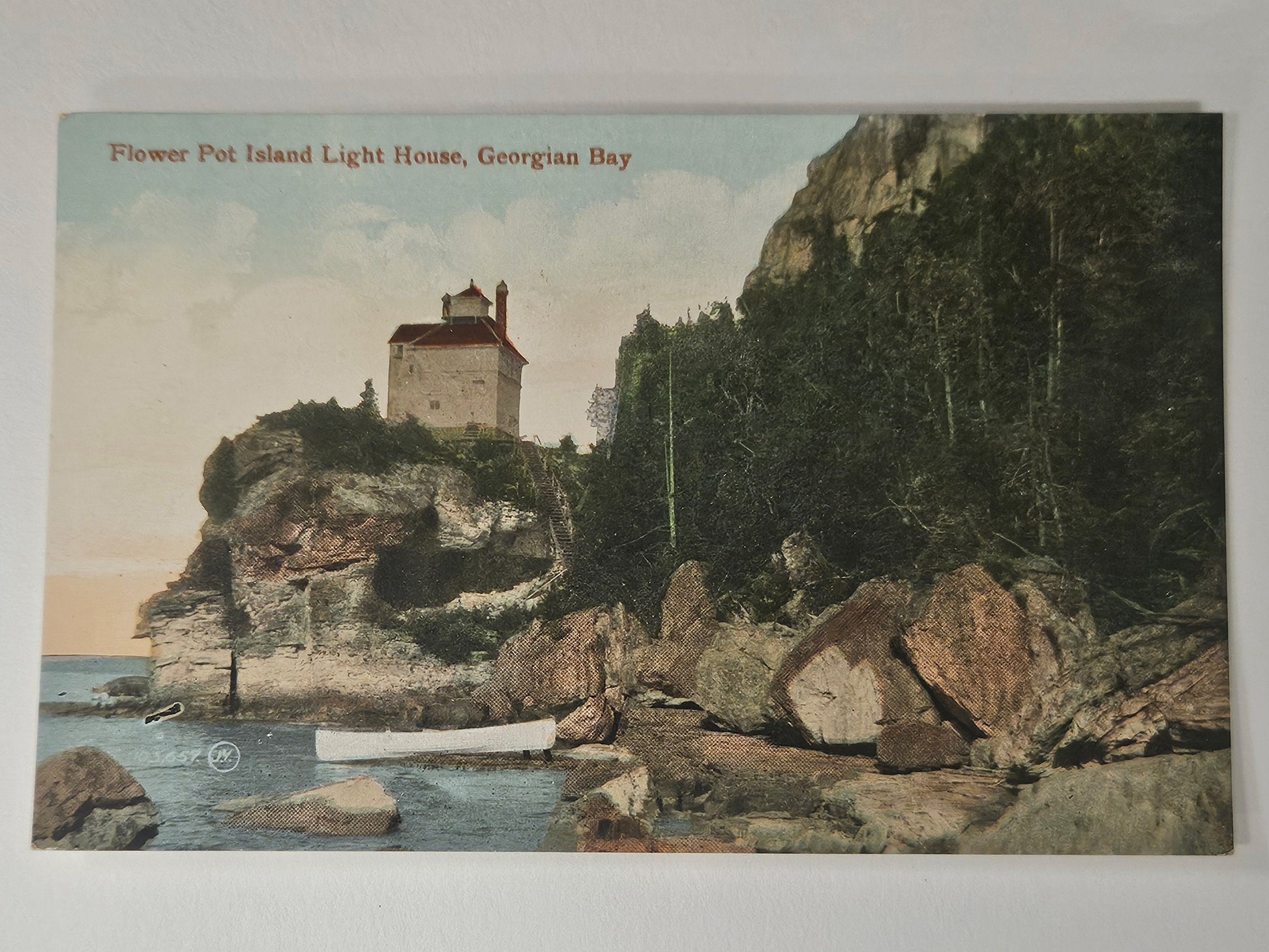 Flower Pot Island Light House - Georgian Bay, Ontario, Canada - Hand tinted 1910 Postcard