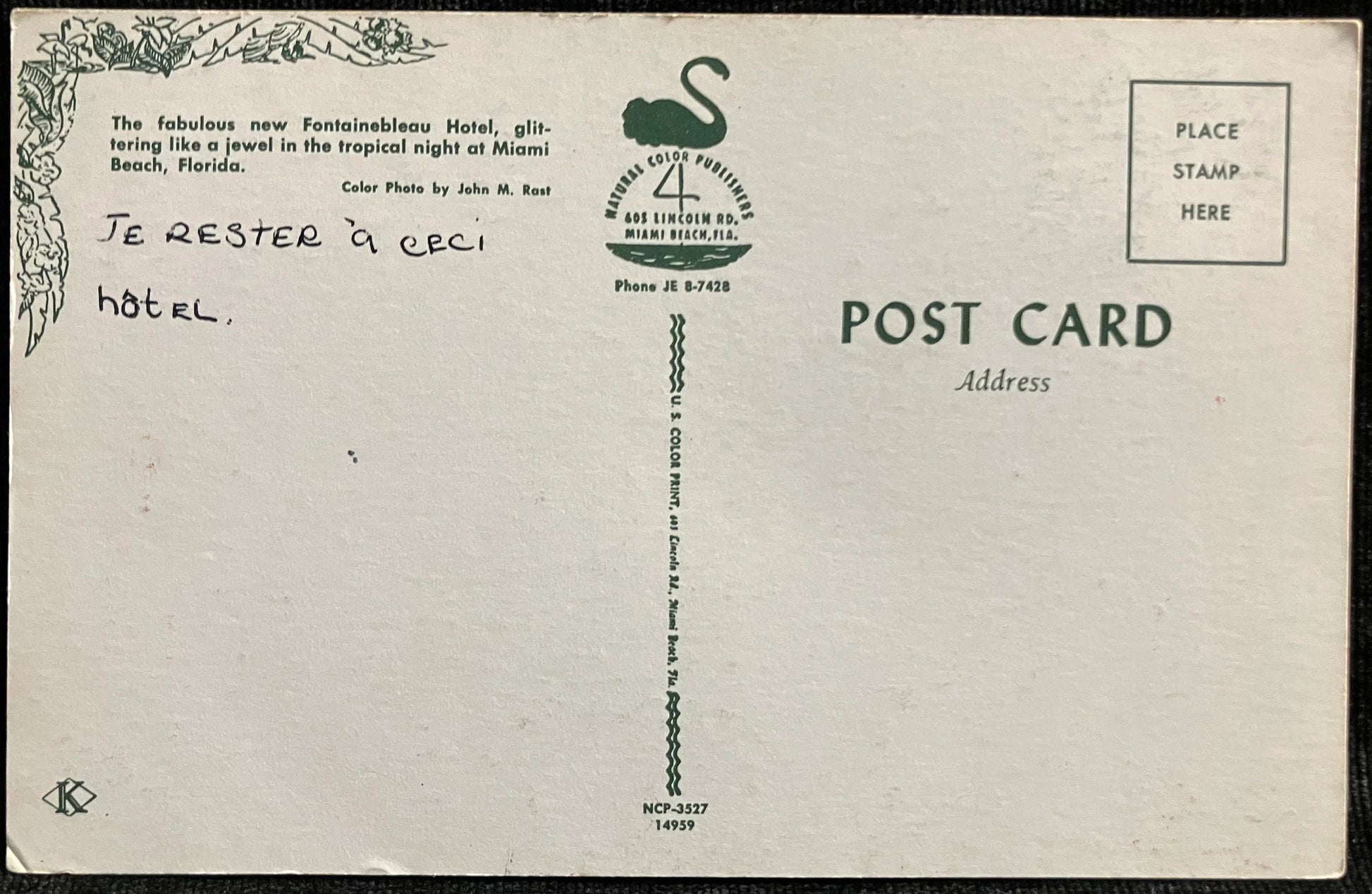 Fontainebleau Hotel in Miami, Florida - Photo: John M. Rast - Vintage Hotel Postcard