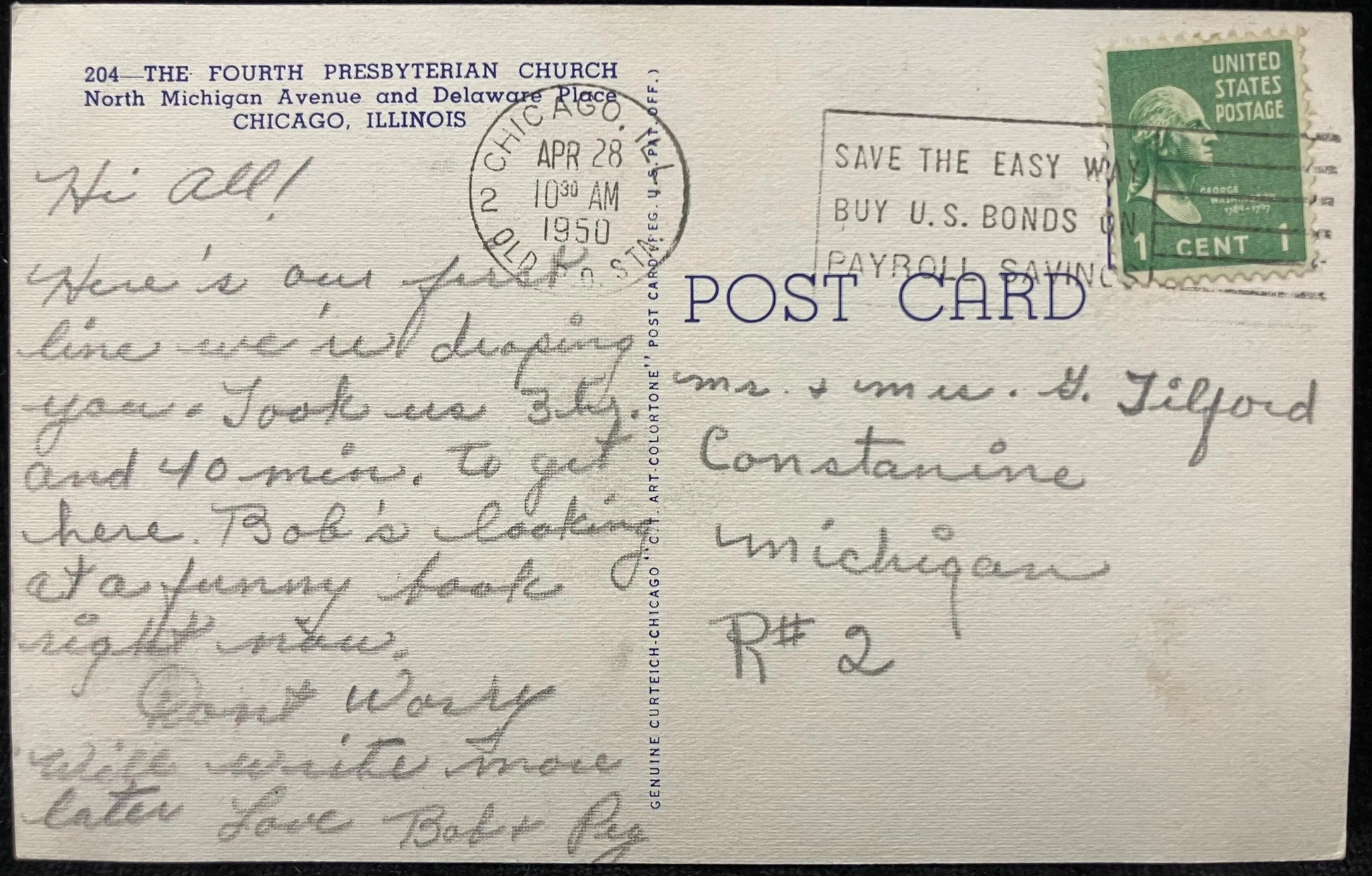 Back: THE FOURTH PRESBYTERIAN CHURCH North Michigan Avenue and Delaware Place CHICAGO, ILLINOIS