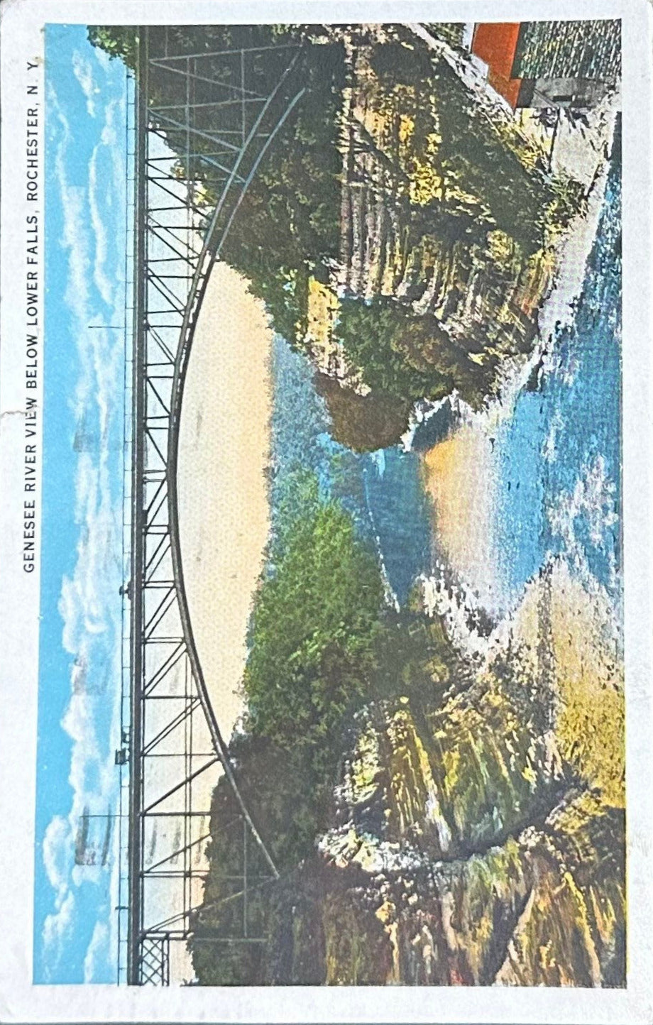 Genesee River - View Below Lower Falls - Rochester, NY - 1929 Postcard