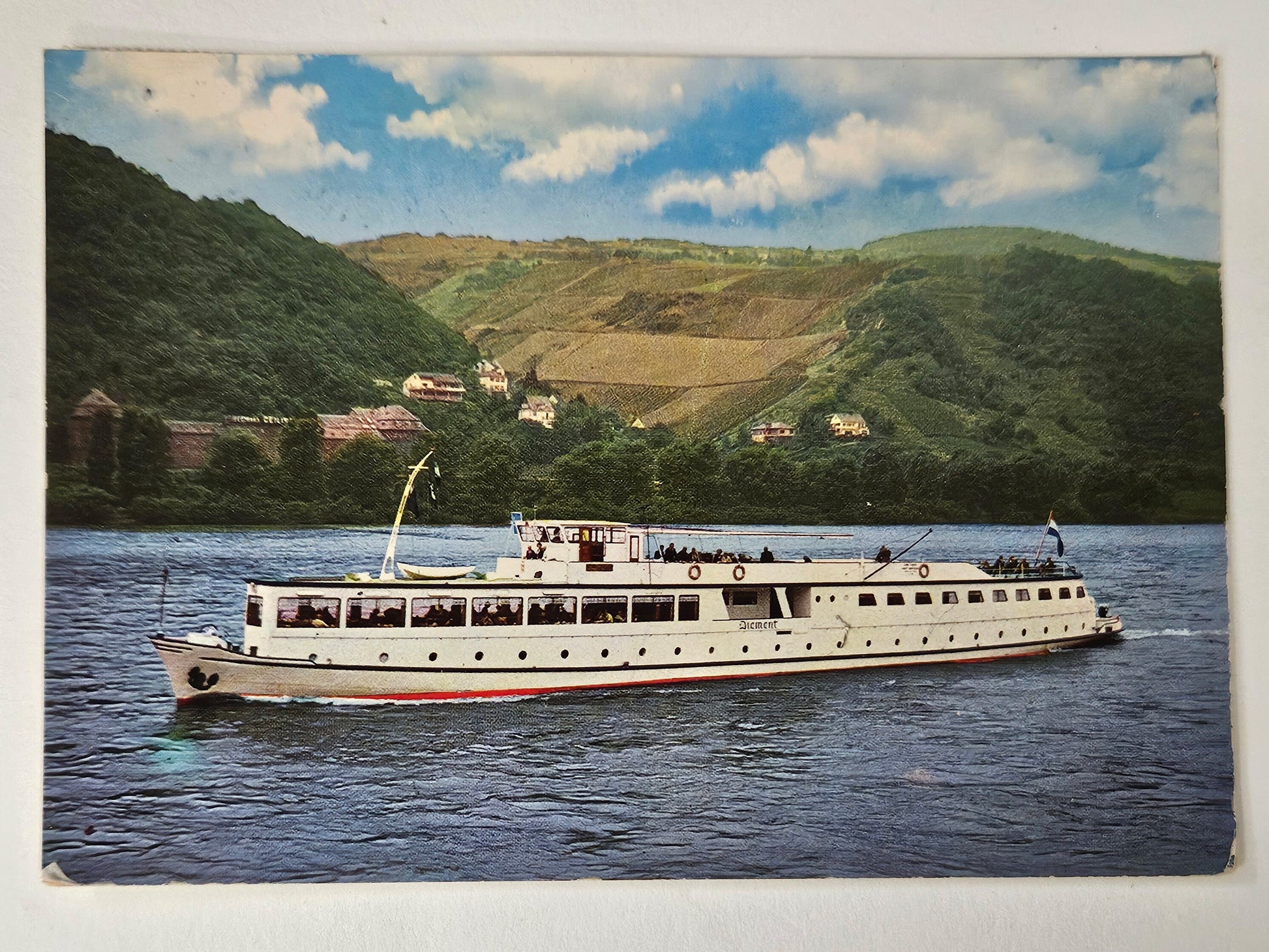 German Ship Diamant Dusseldorf - Passenger Ferry With Mountain Farmland - 1970 Postcard