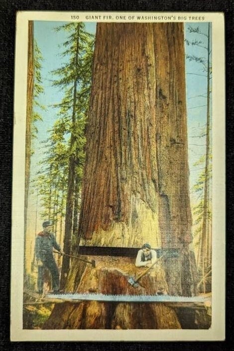 Giant Fir - One of Washington's Big Trees, Washington - 1940s Linen Nature Postcard