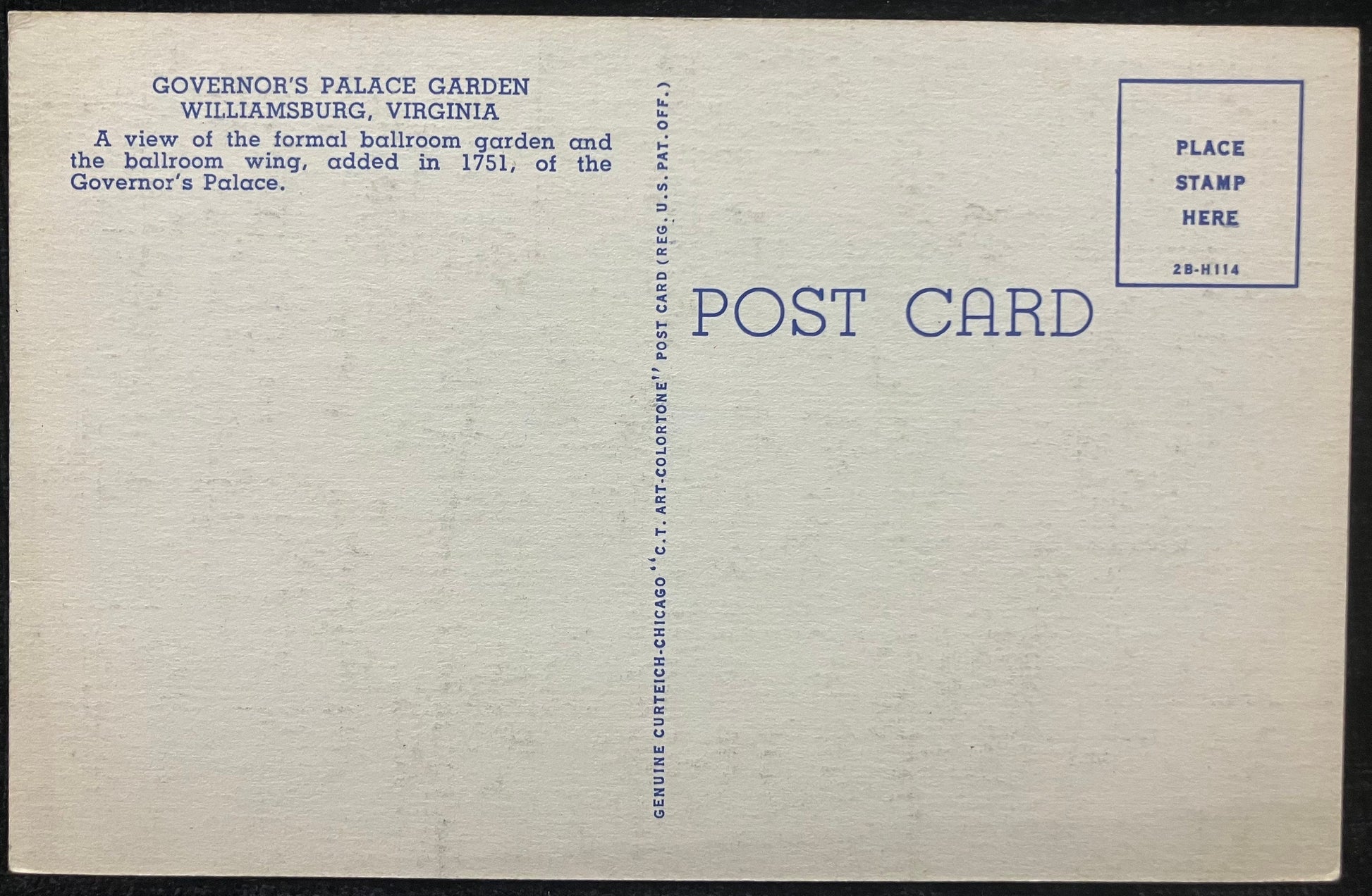 Front: Governor’s Palace Garden, Williamsburg, Va.