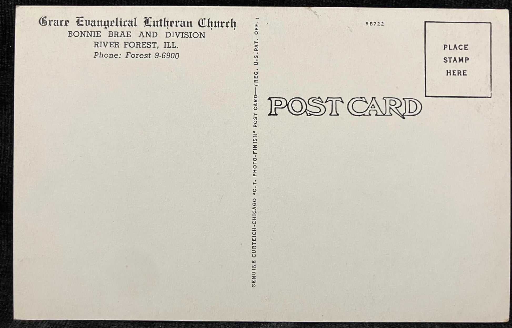 Grace Evangelical Lutheran Church, River Forest, Illinois - Vintage Church Postcard