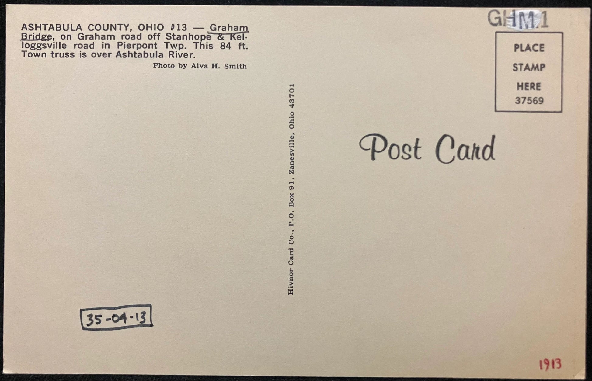 Graham Bridge - Ashtabula County, Ohio - Photo by Alva H. Smith - Vintage Postcard