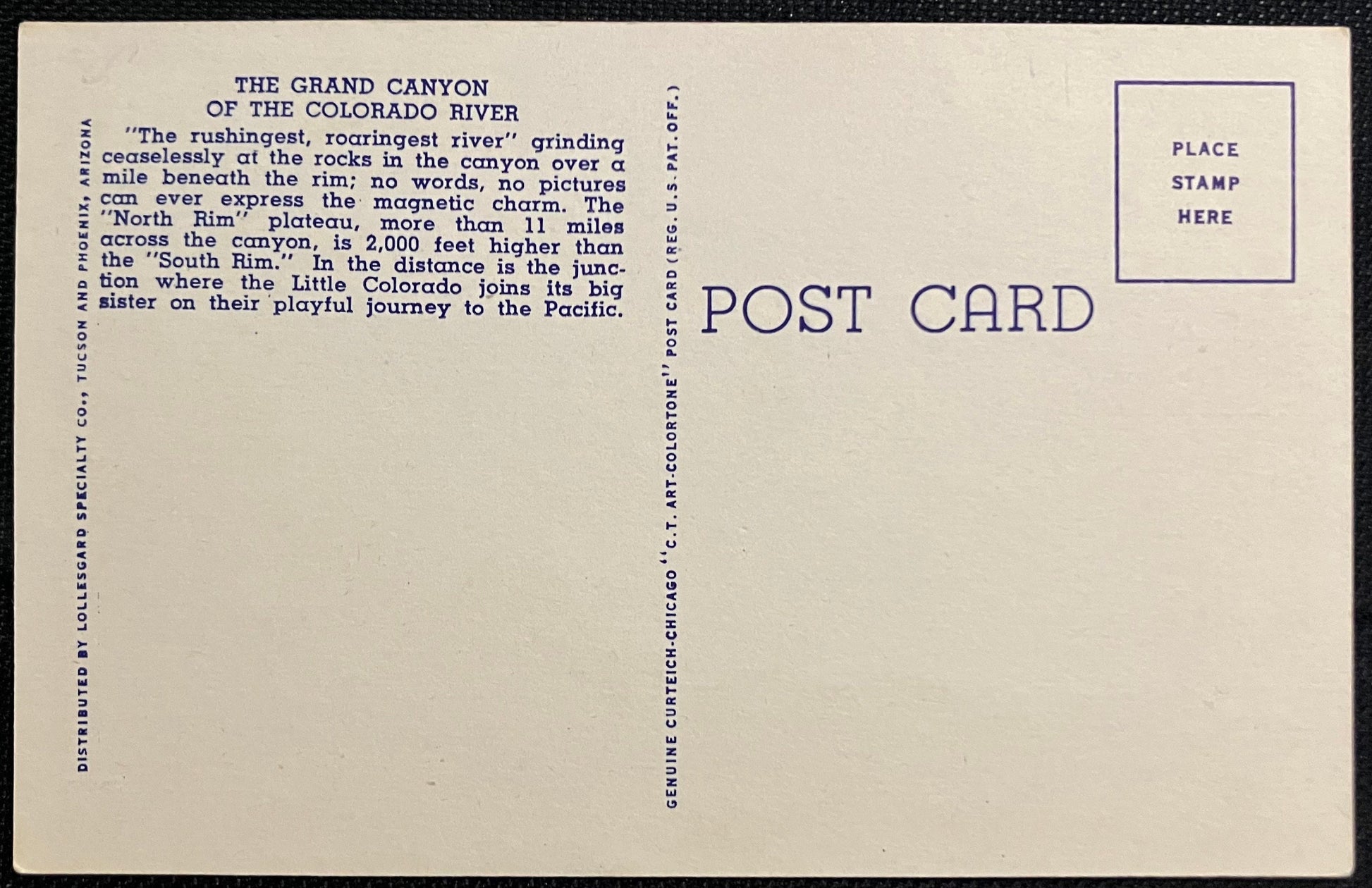 Front: “Grand Canyon of the Colorado River, Arizona”