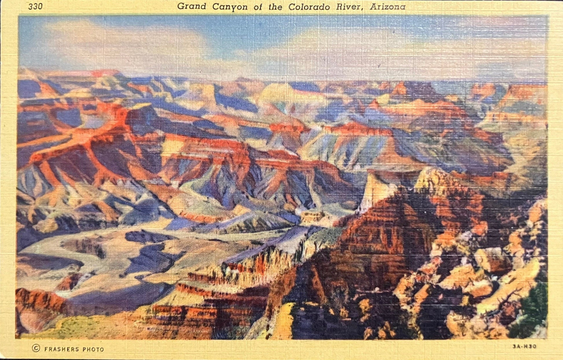 Grand Canyon - Colorado River - Arizona - Frashers Photo - 1940s Linen Postcard