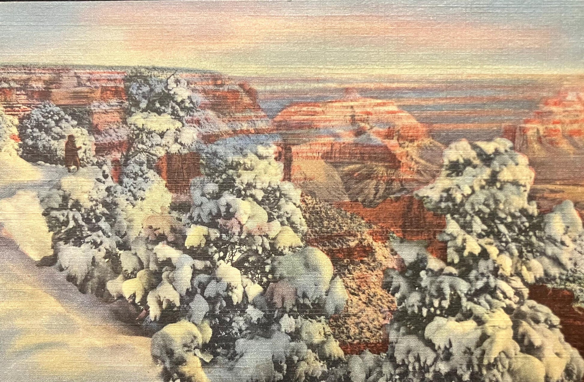 Grand Canyon in the Winter - Arizona - 1940s Linen Postcard