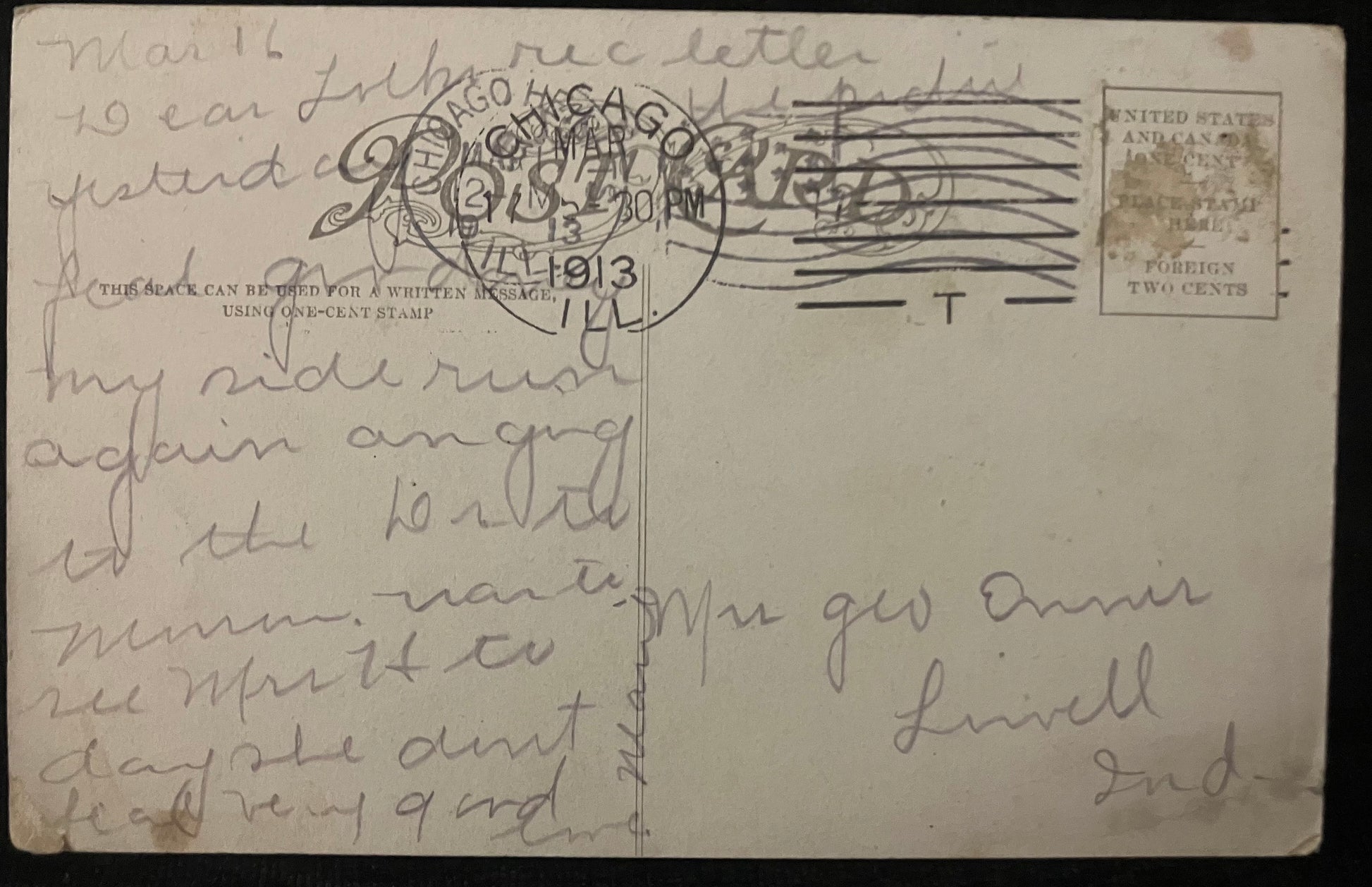 Mailed: Postmark on Mar 13, 1913 from Chicago, Ill. with stamp removed