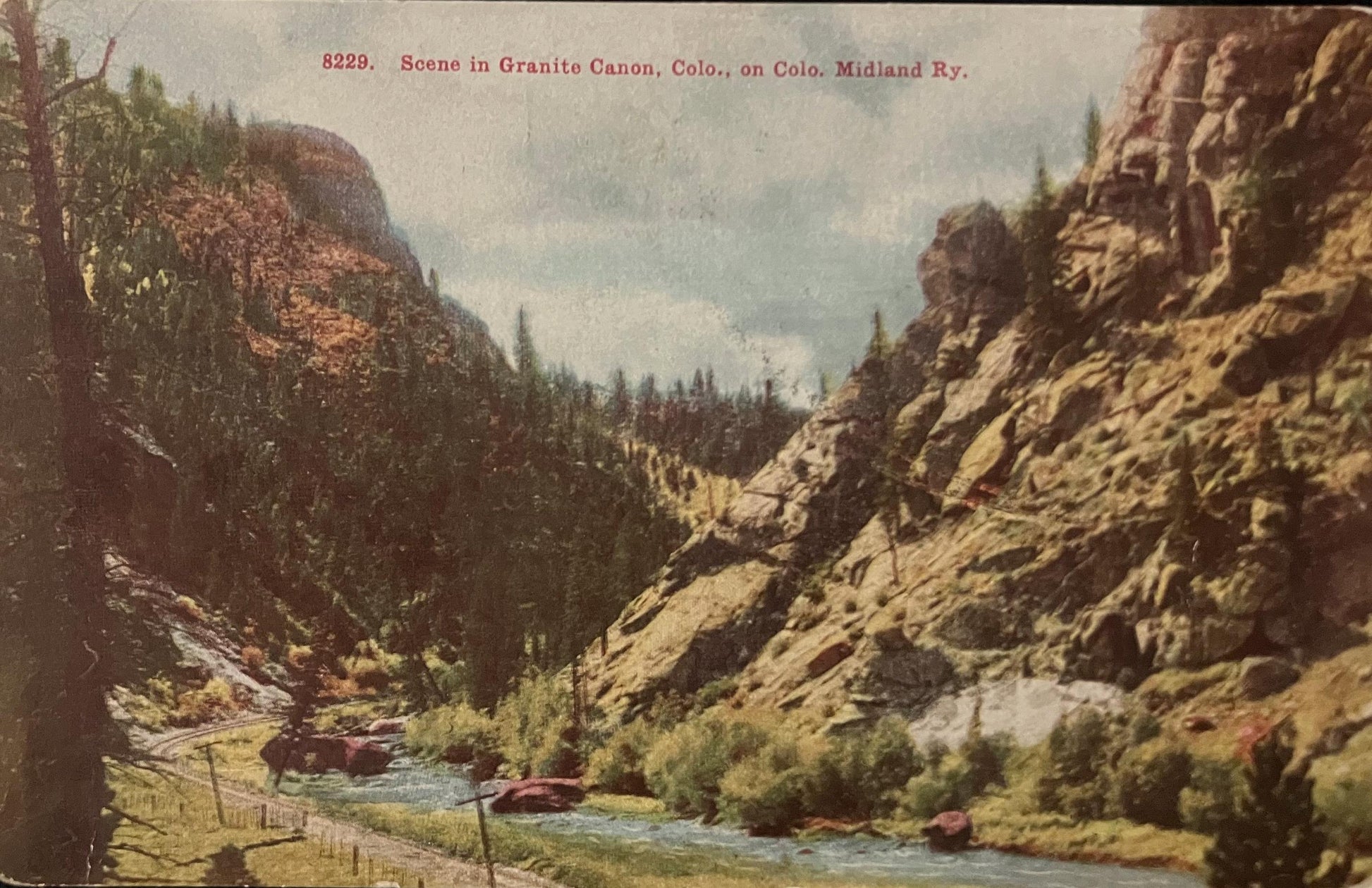 On front: Scene in Granite Canon, Colo., on Colo., on Colo. Midland Ry.
