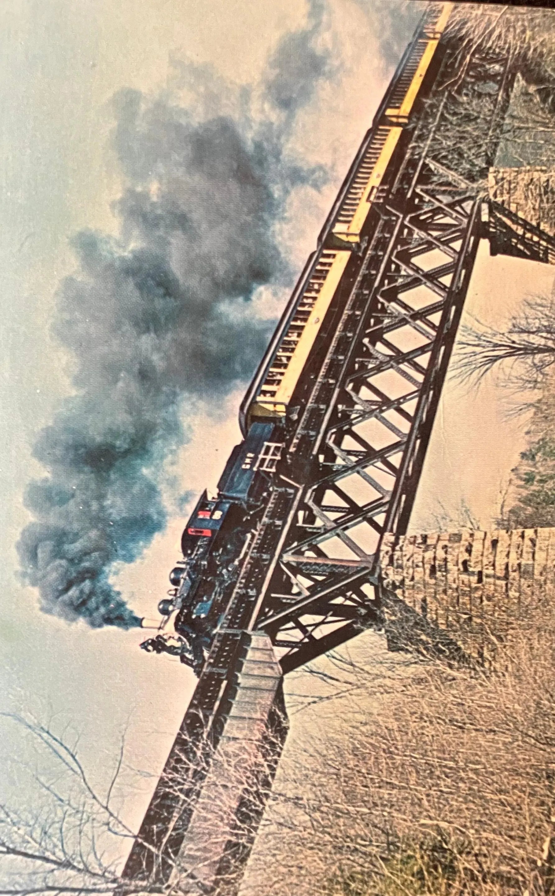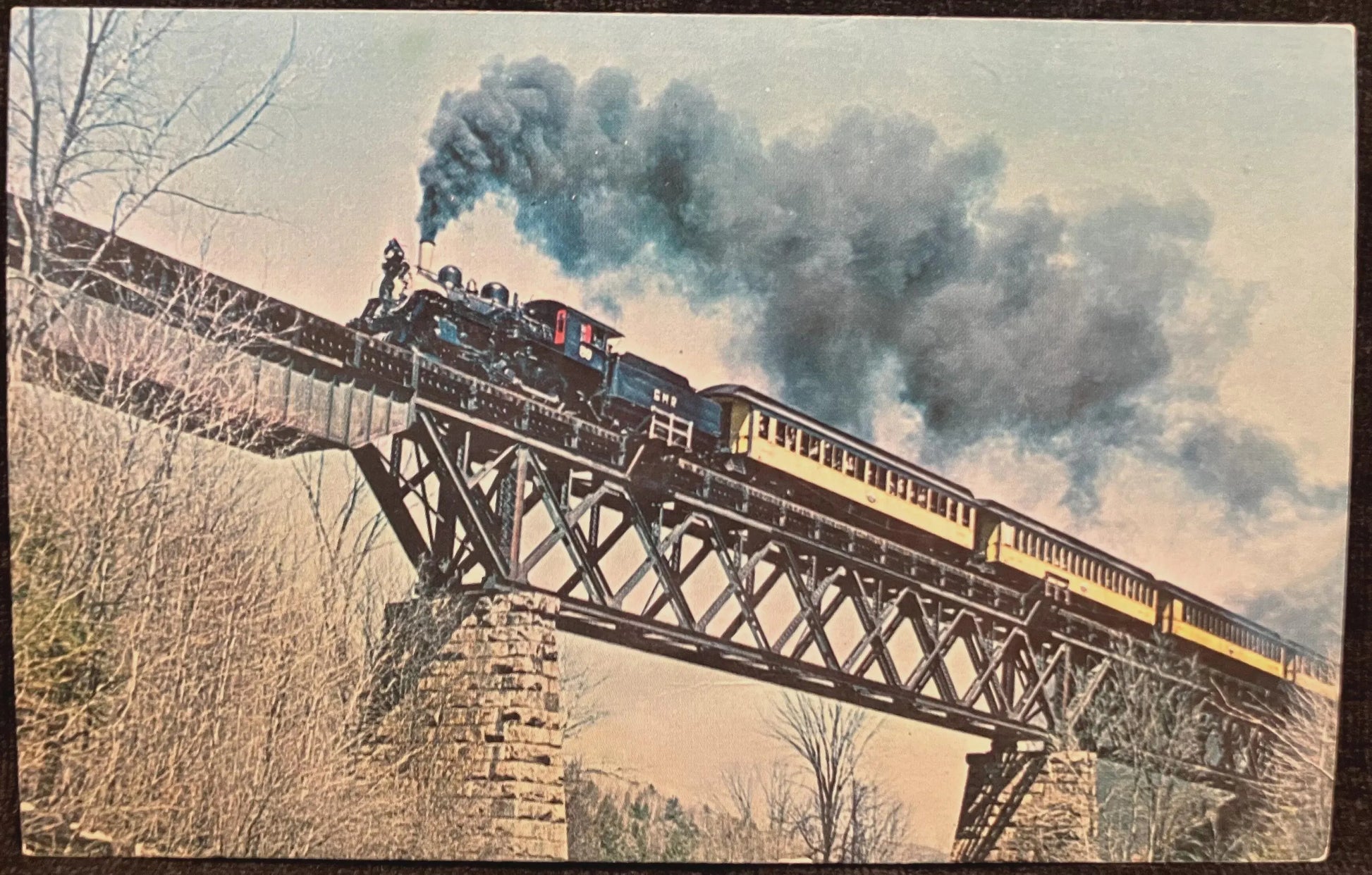 Back: Green Mountain RR 89 Ex-Canadian National No. 89 crosses the Cuttingsville trestle of the Green Mountain RR on May 1, 1965. Photo by Ron Ziel