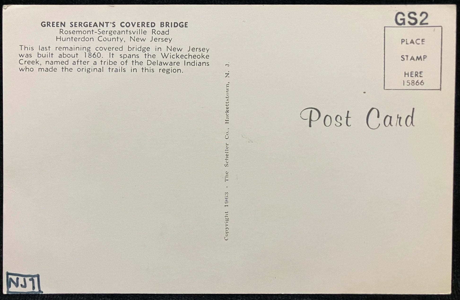 On front: A photo of Green Sergeant’s Covered Bridge in Hunterdon County, New Jersey