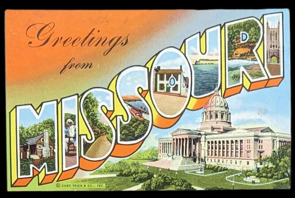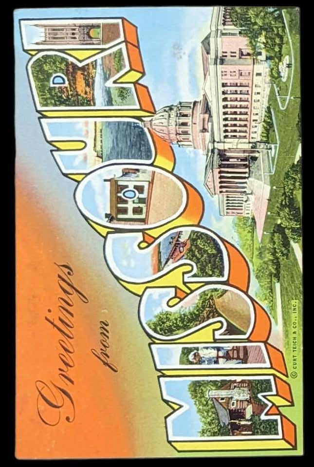 This is a bright and fun design from a vintage Missouri postcard with the state capitol. The print can be used for an assortment of thing such a printing it on a mug, t-shirt, poster or cards to send.