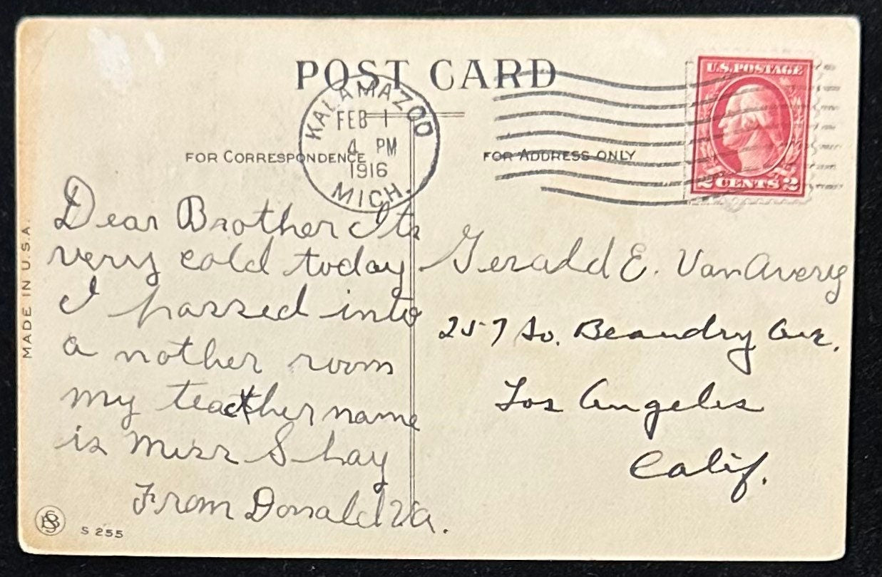 Mailed: Posted on February 1, 1916 from Kalamazoo, Michigan with a 2 cent Carmine President George Washington stamp