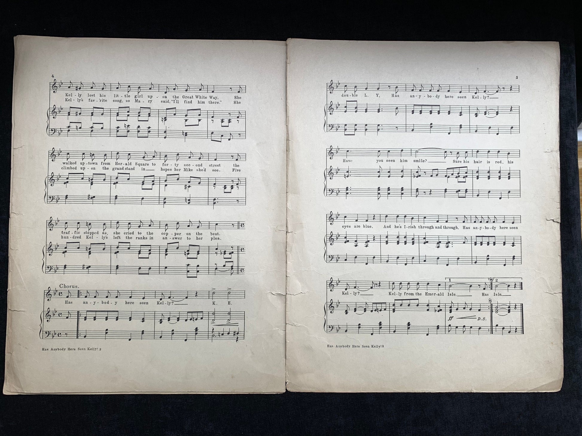 "Has Anybody Here Seen Kelly?" - Written and composed by C.W. Murphy and Will Letters. Look closely at pictures for detailed condition. The spine is not in tact on this piece, each page has separated from the others over time, but all pages are here.