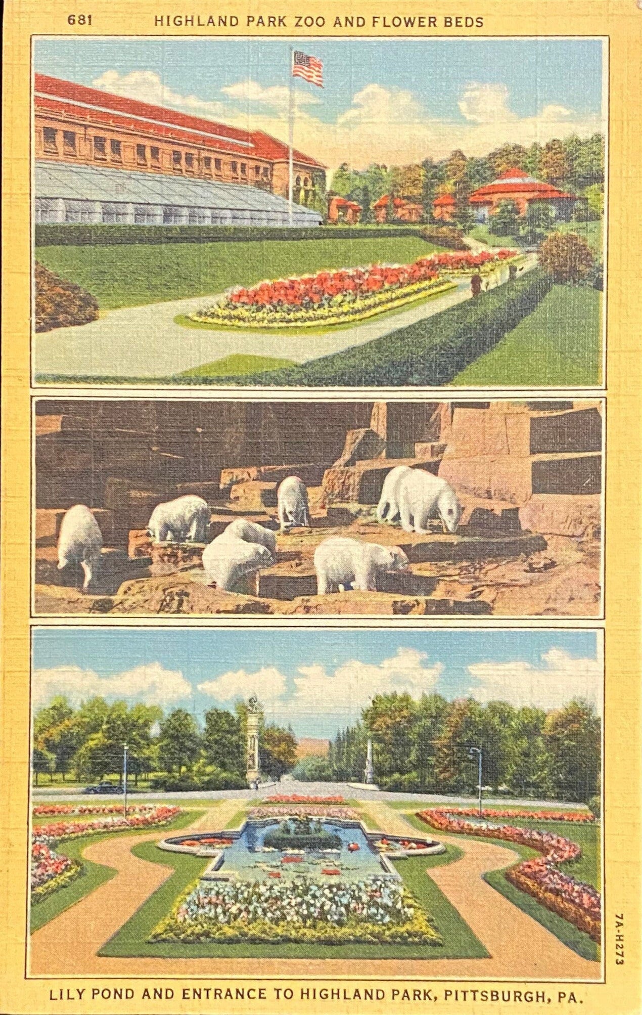 Highland Park Zoo and Flower Beds Lily Pond and Entrance to Highland Park, Pittsburgh, PA - 1937 Linen Postcard