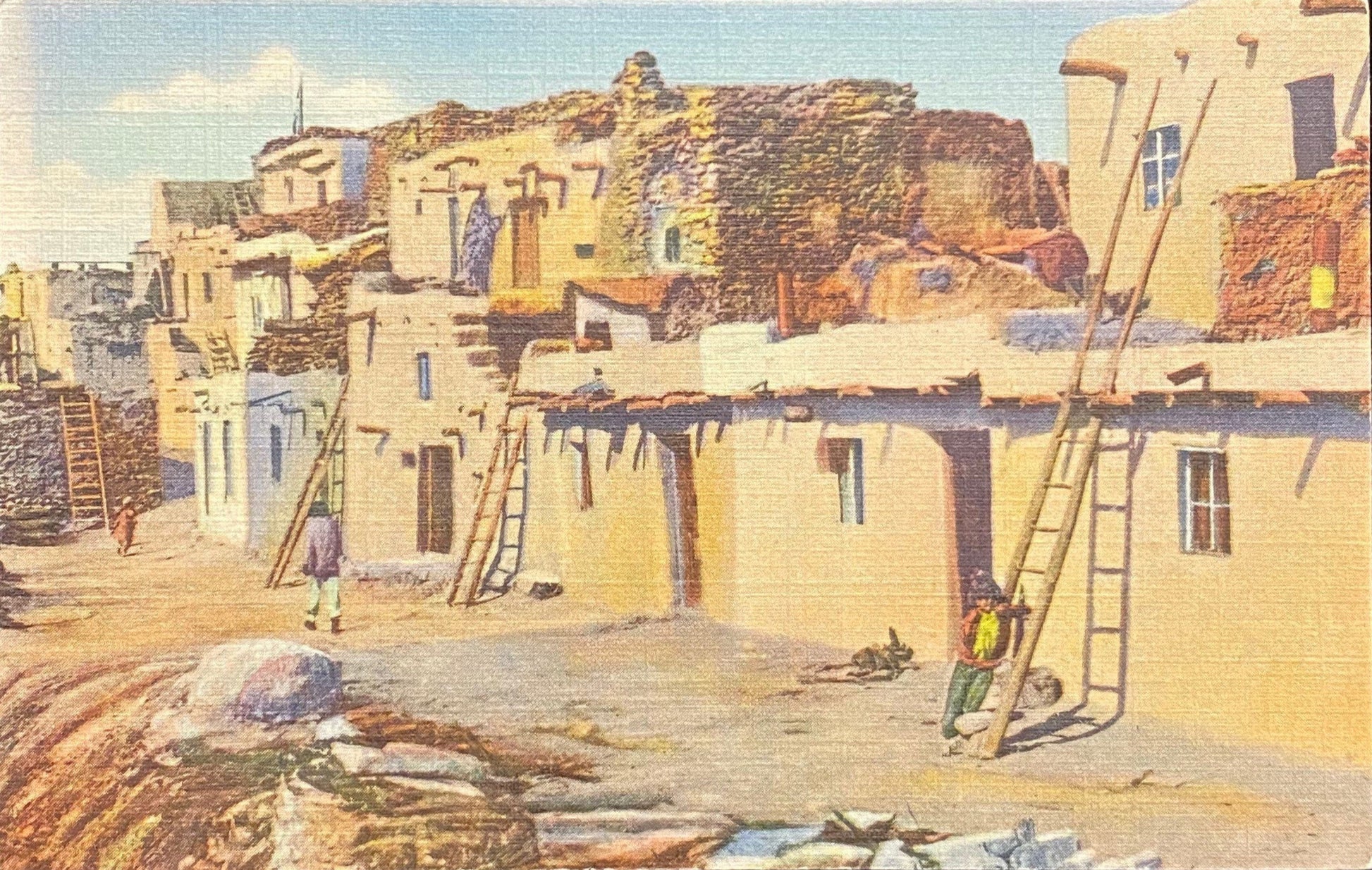 Hopi Indian Pueblo - 1940 Linen Postcard