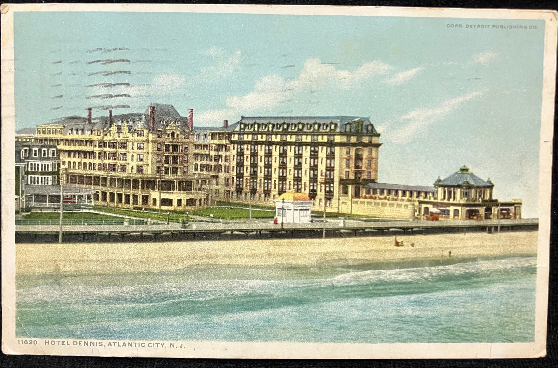 Front: Hotel Dennis, Atlantic City, N. J. Copr. Detroit Publishing Co. On back: