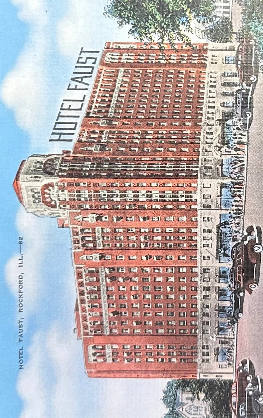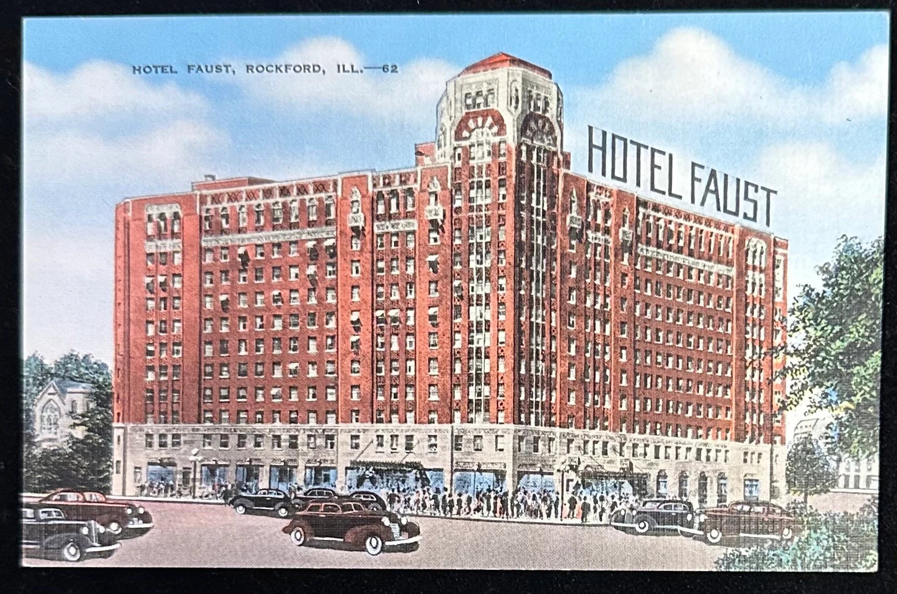 Hotel Faust, Rockford, Illinois - Linen Vintage Postcard