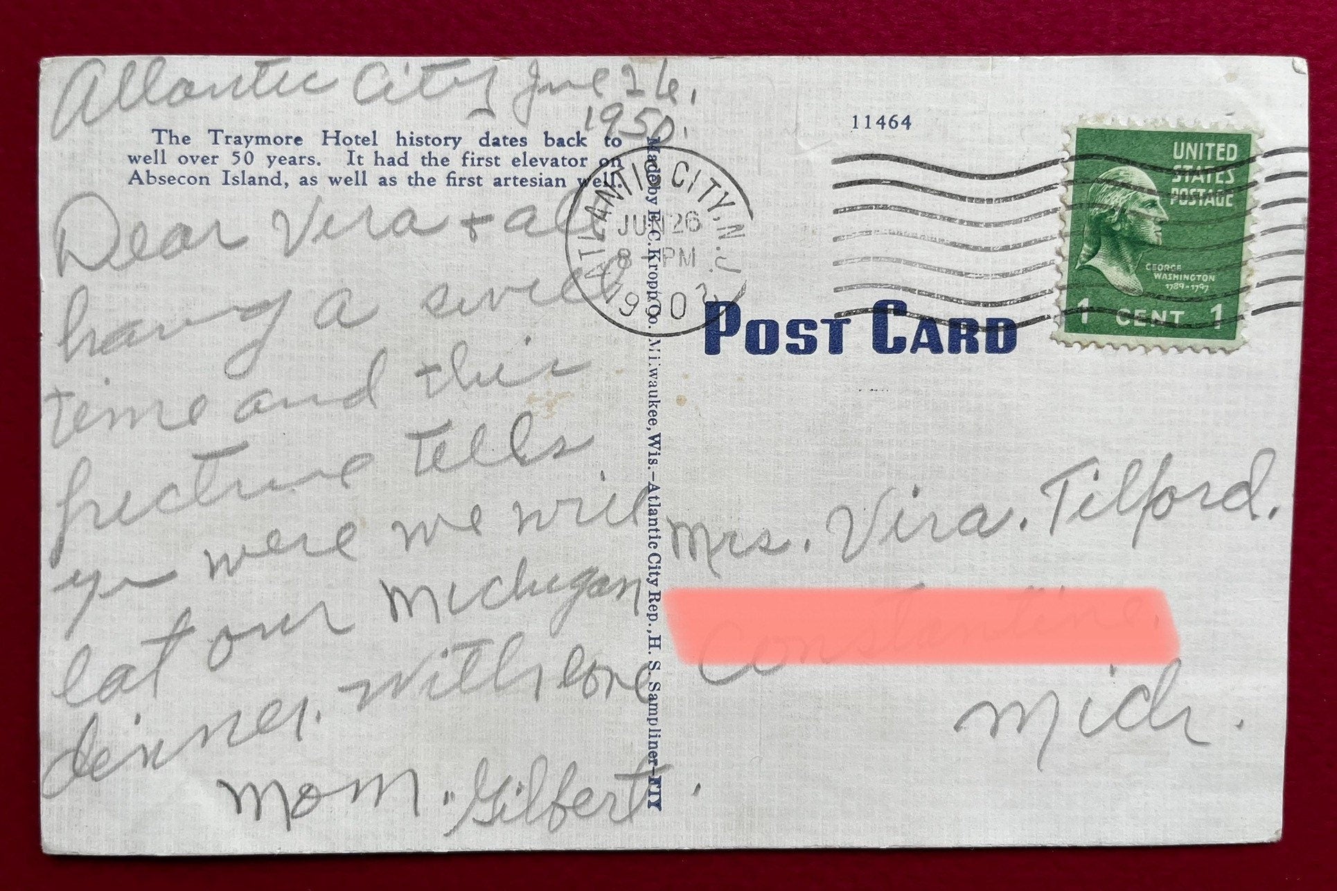 Postmark: June 26, 1950 - Atlantic City, NJ