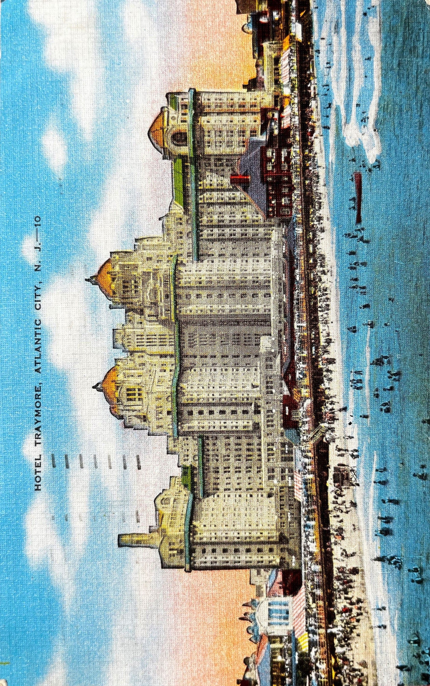 Back Text: "The Traymore Hotel history dates back to well over 50 years. It had the first elevator on Absecon Island, as well as the first artesian well."