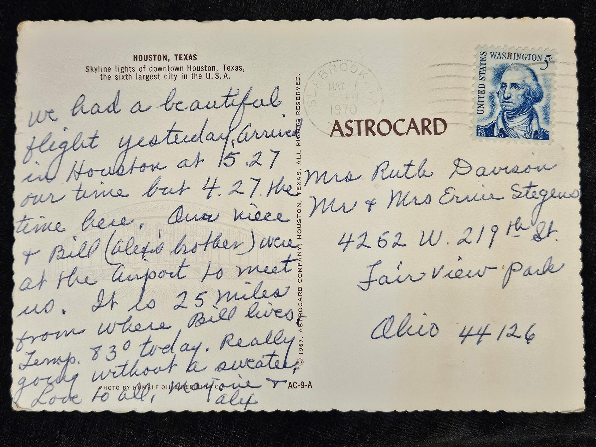 mailed with 5 cent Washinton Blue stamp