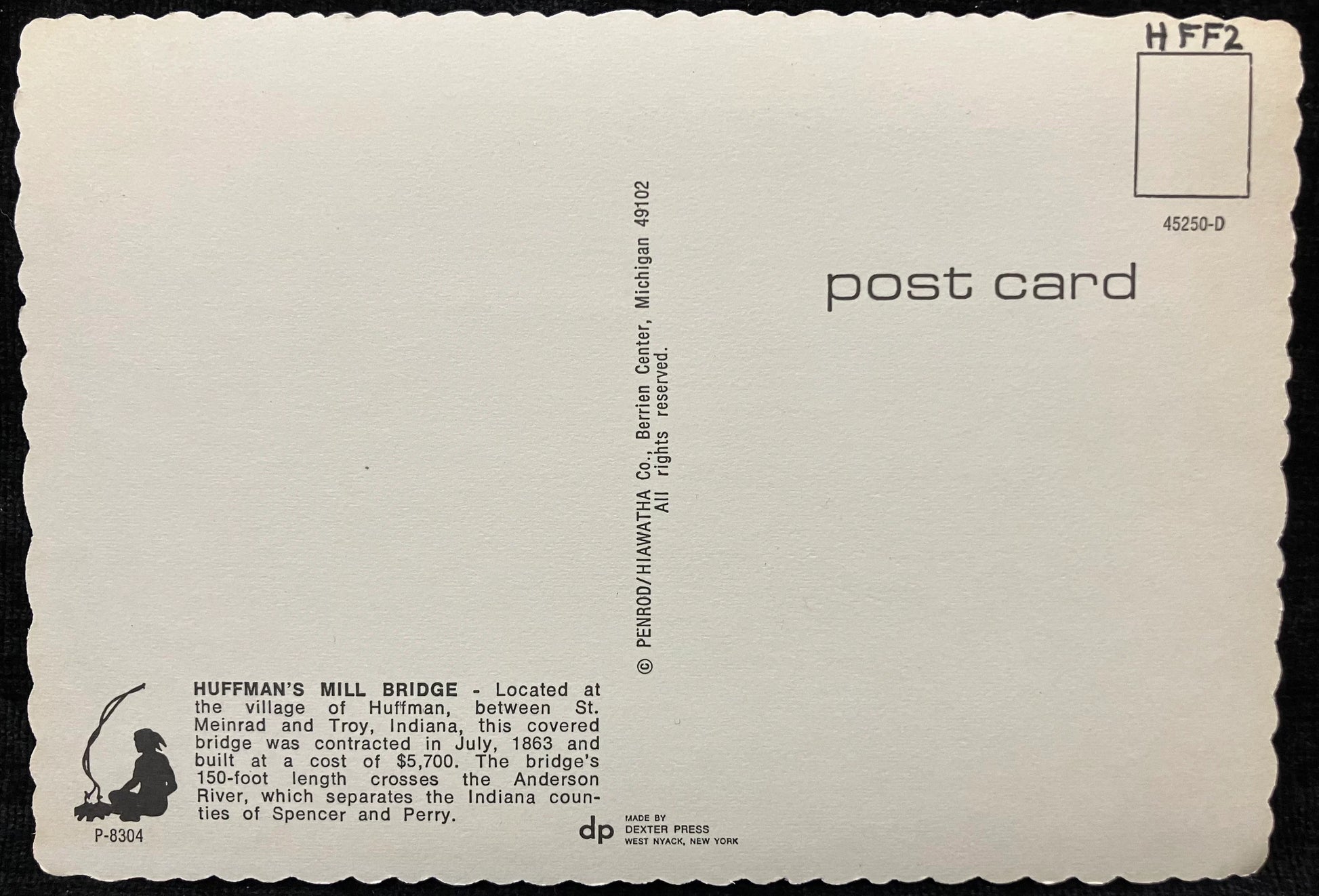 Huffman’s Mill Bridge between St. Meinrad and Troy, Indiana - Vintage Covered Bridge Postcard