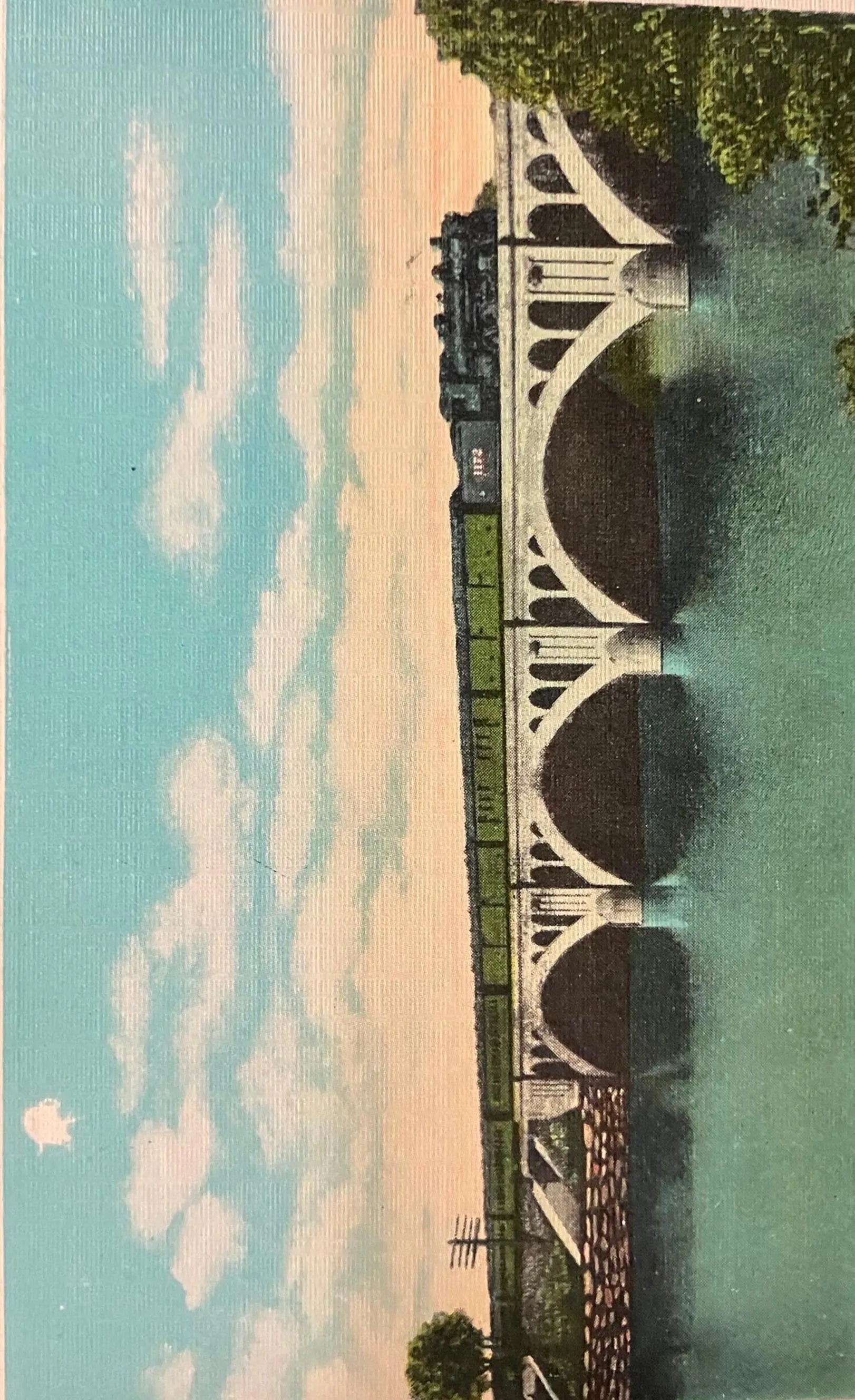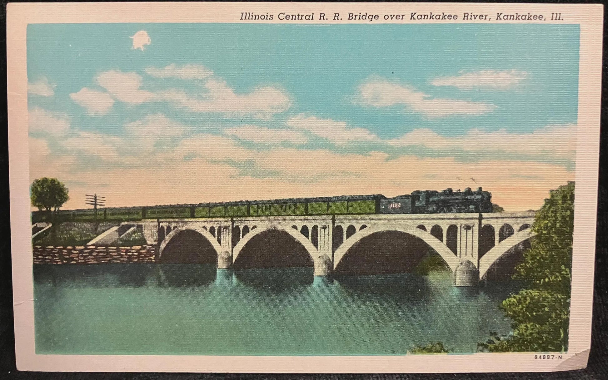 Illinois Central R. R. Bridge over Kankakee River, Kankakee, Illinois - Vintage Train Postcard
