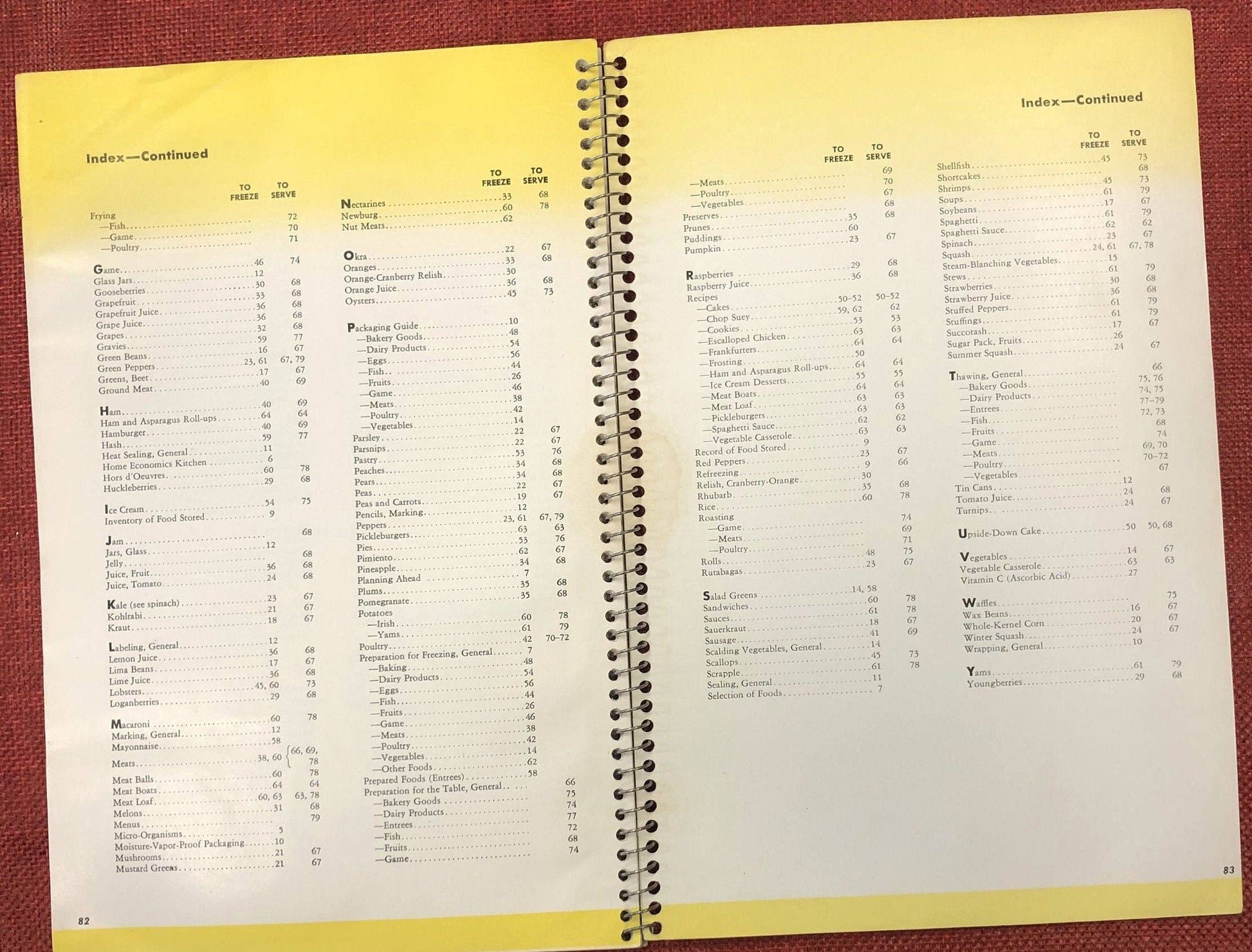 This book contains instructions on how to properly freeze food with pictures included, recipes, and instructions on how to thaw and prepare the frozen food with tables for easy to read instruction.