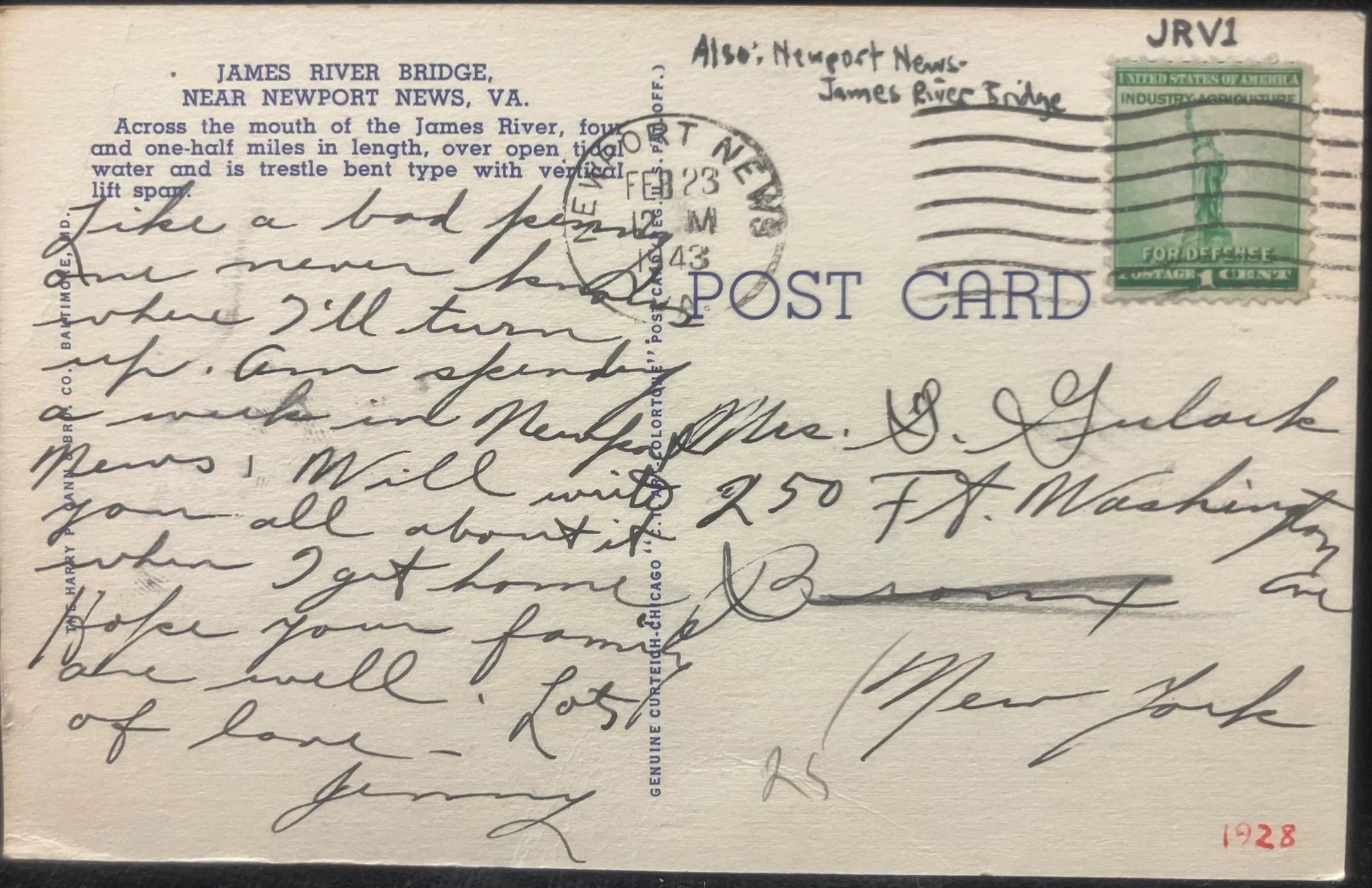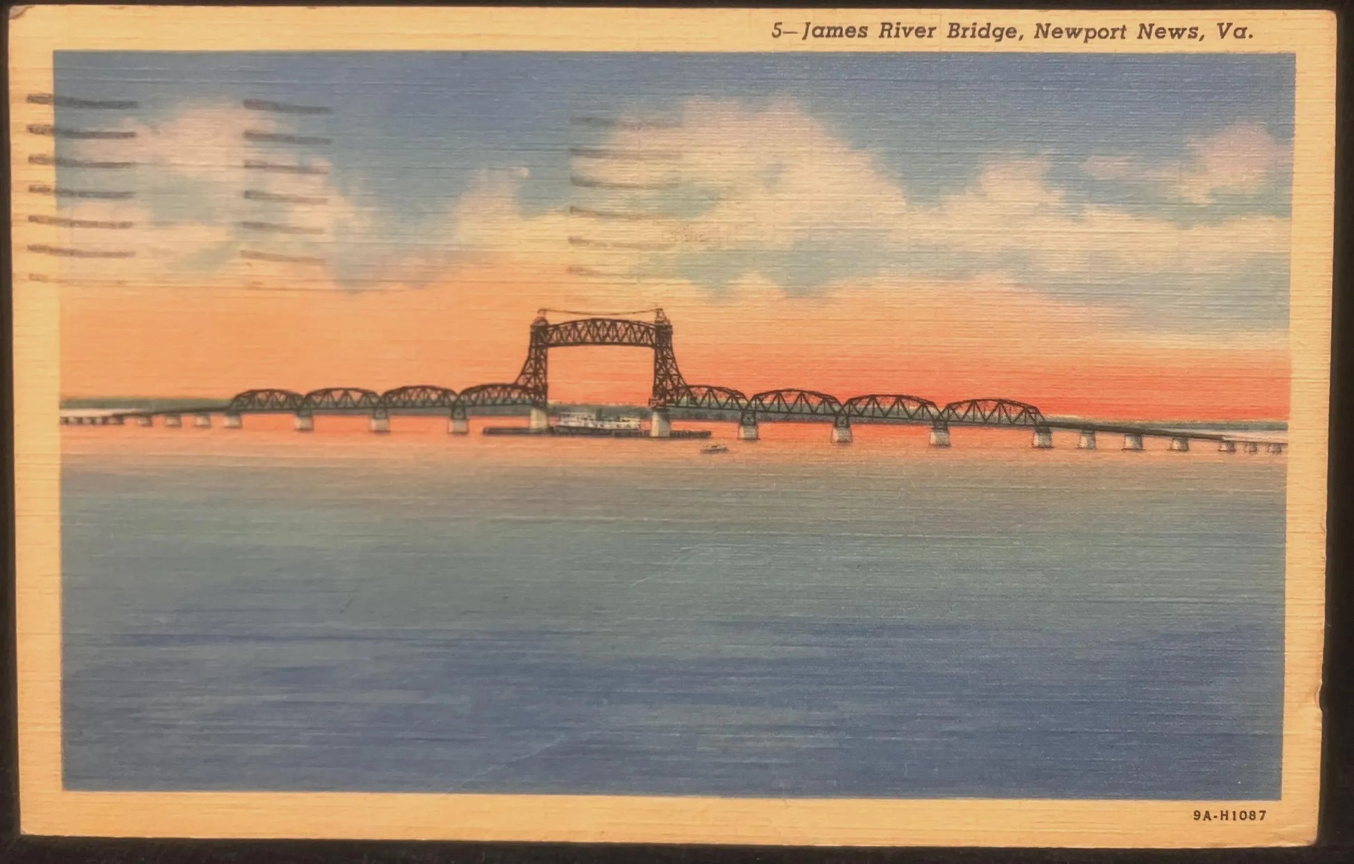 James River Bridge, Newport News, Virginia - Vintage Bridge Postcard