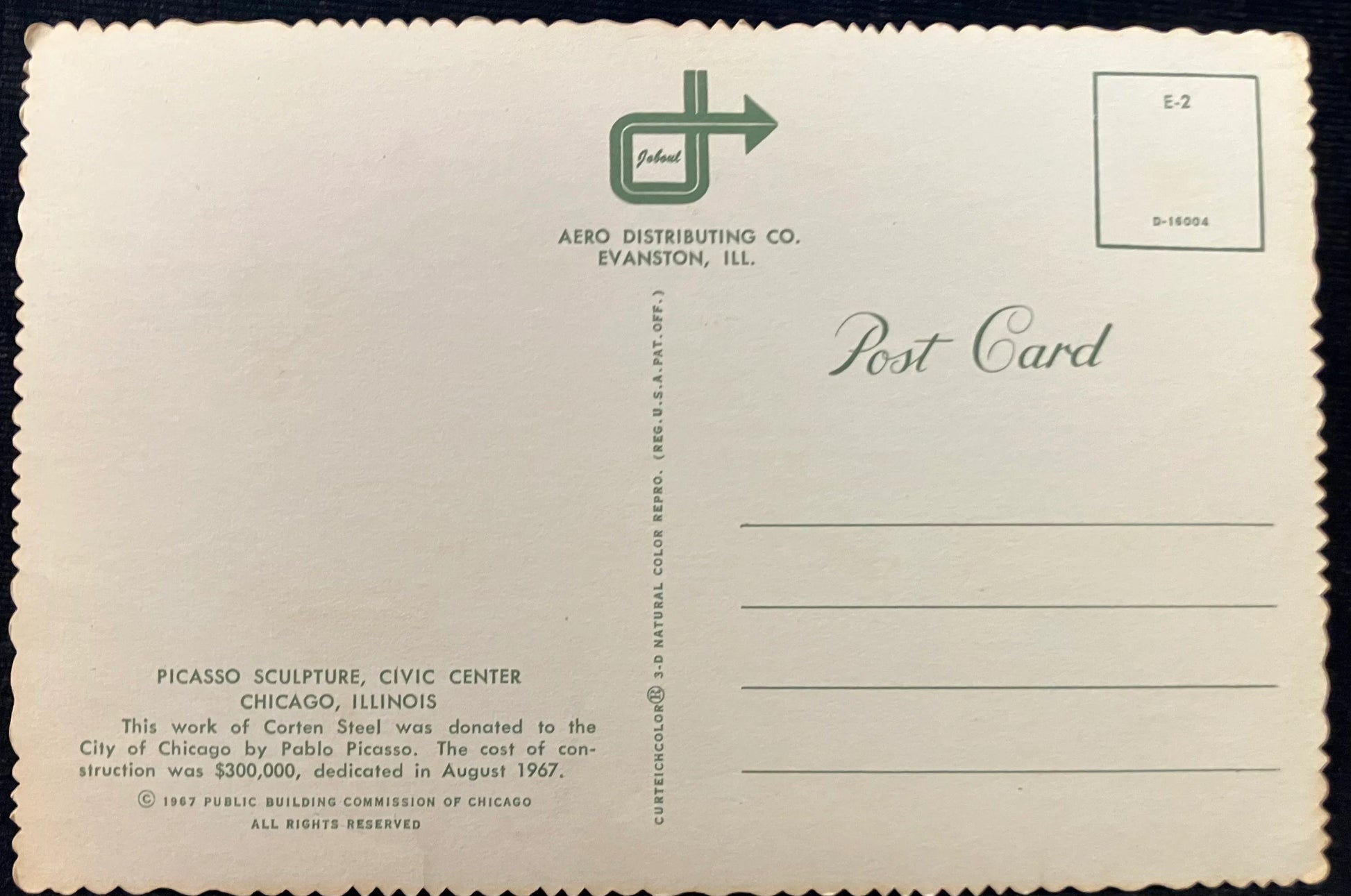 On back: John Hancock center and Water Tower - A graphic symbol of Chicago’s rich heritage, the Tower, one of few buildings to survive the great Chicago Fire, is seen in perspective with the towering John Hancock Center, the 100-story residential-office building rises more than a quarter of a mile above Chicago’s North Michigan Avenue, typifying the vigor and glair of modern day Chicago. Copyright 1970.