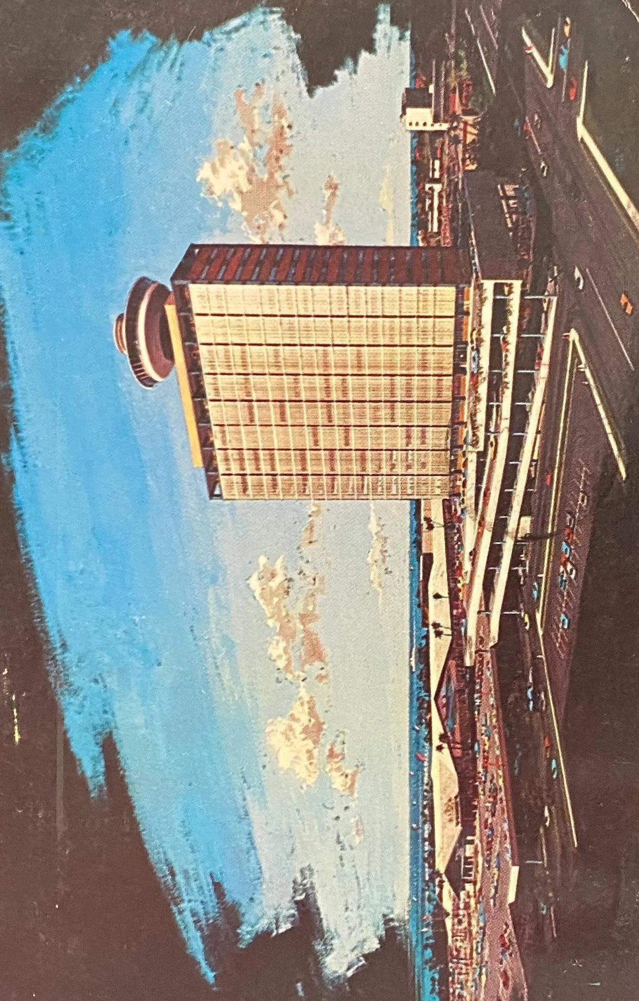 Back: "Hawaii's Revolving Restaurant and Cocktail Lounge Atop the 25 Story Ala Moana Building. 360° Panorama Hourly. Lunch, Dinner and Cocktails Seven Days Weekly. Reservations Suggested - Phone97138. Adjoins Fabulous Ala Moana Shopping Center With Its 92 Merchants and 5,000 Free Parking Spaces."