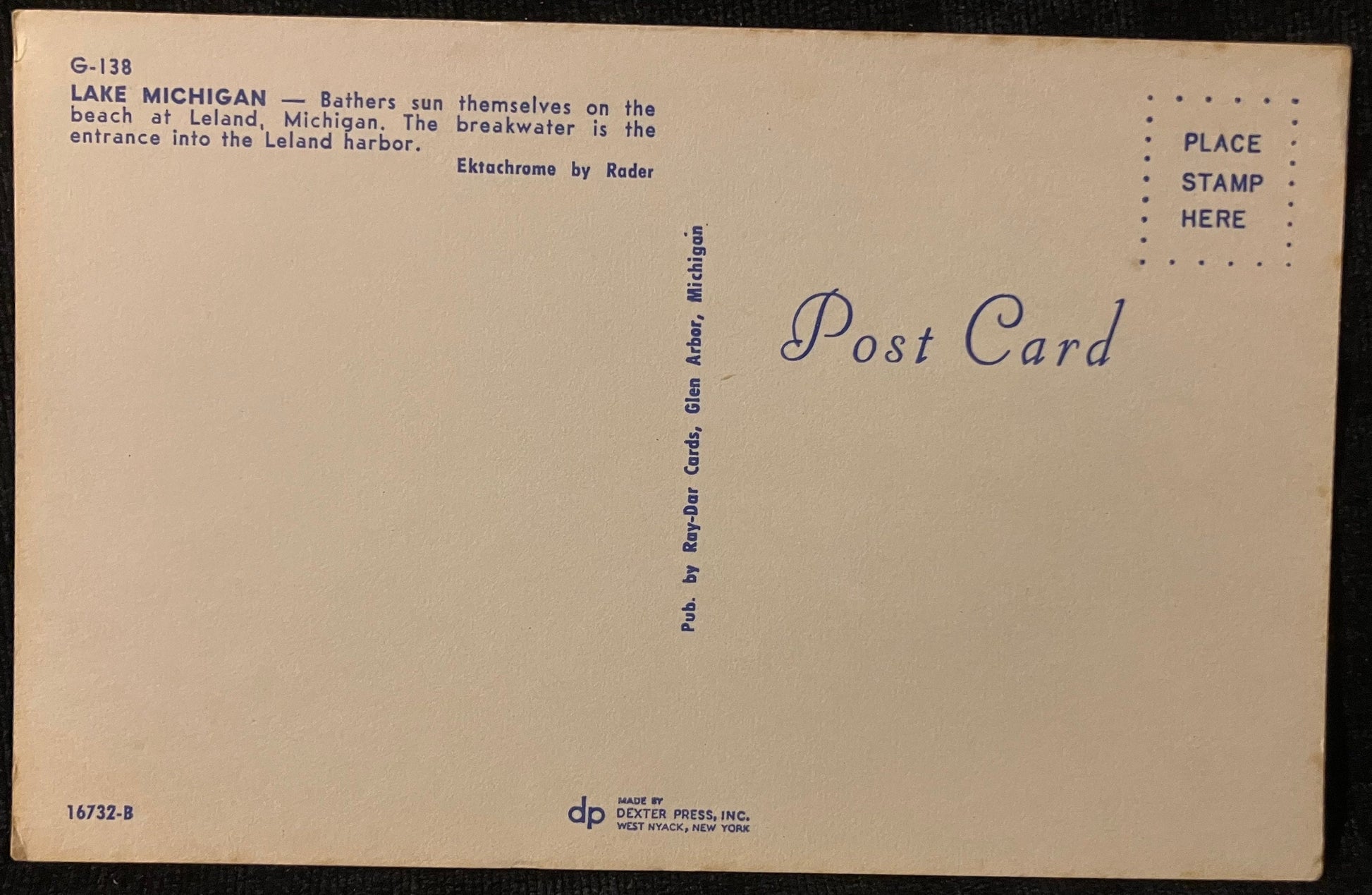 Lake Michigan from Leland, Michigan - Ektachrome: Rader - Vintage Beach Lake Postcard