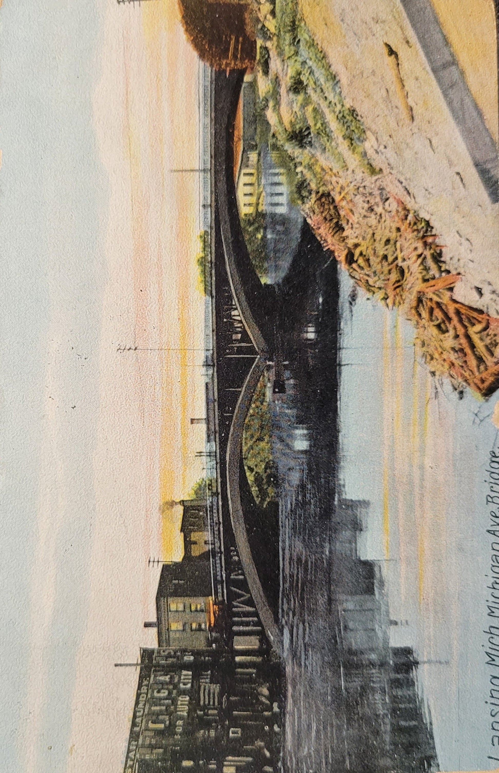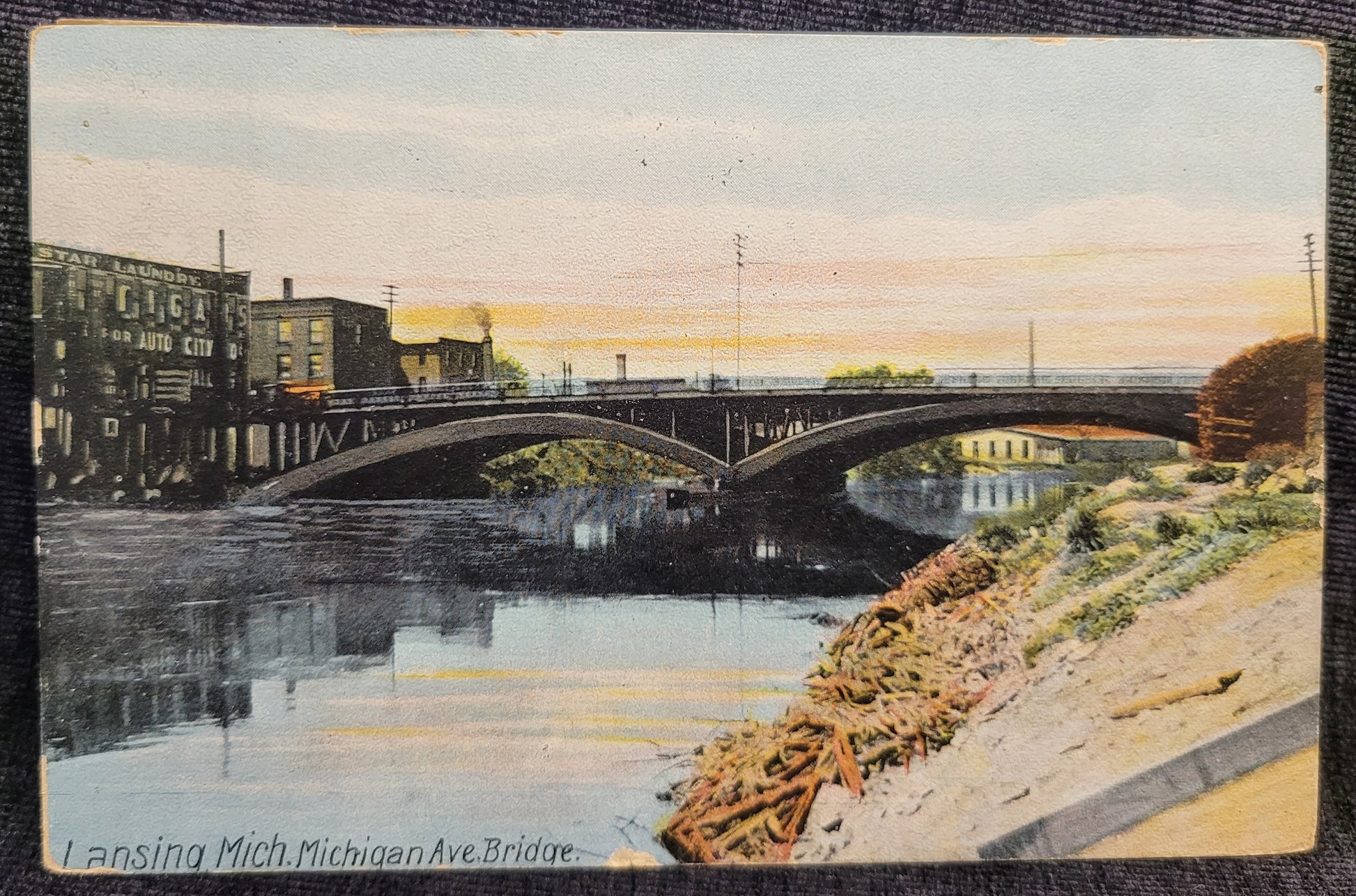 Lansing Michigan, Michigan Ave. Bridge - Hand Tinted Real Photo Postcard