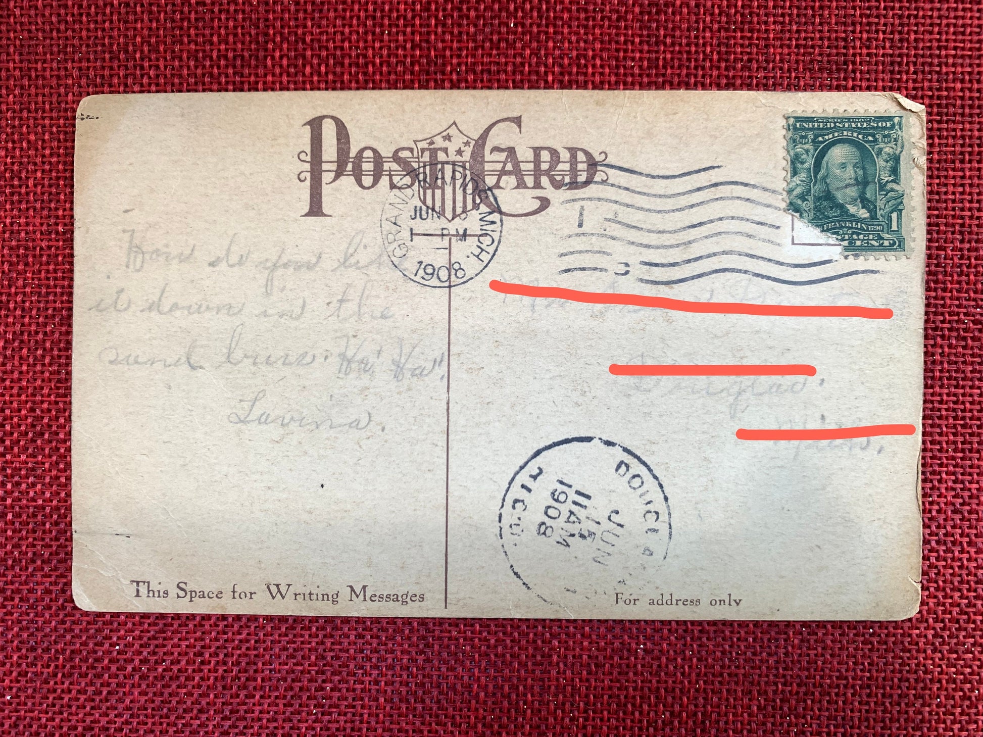 Postmark: June 13, 1908 – Grand Rapids, Michigan