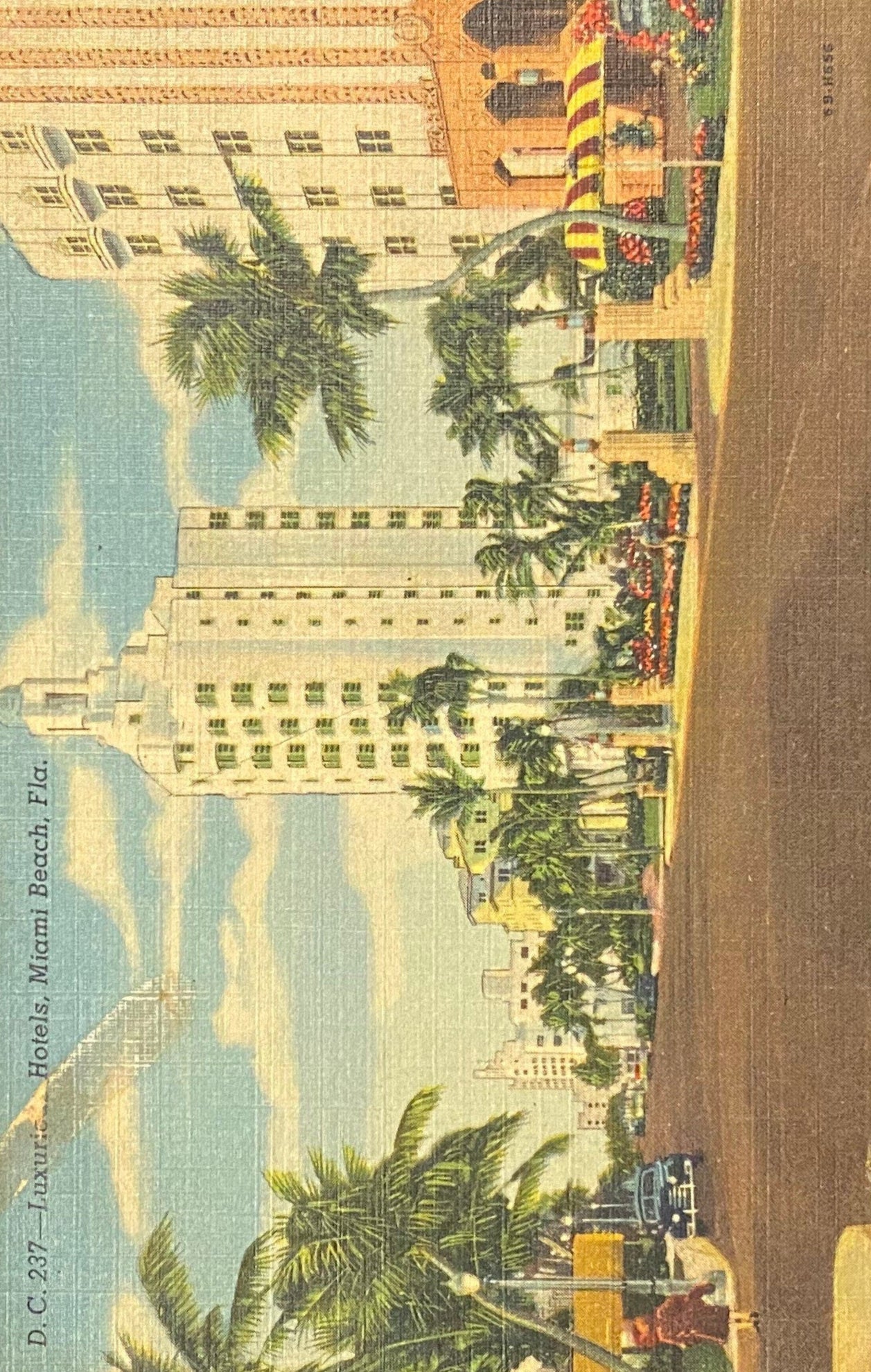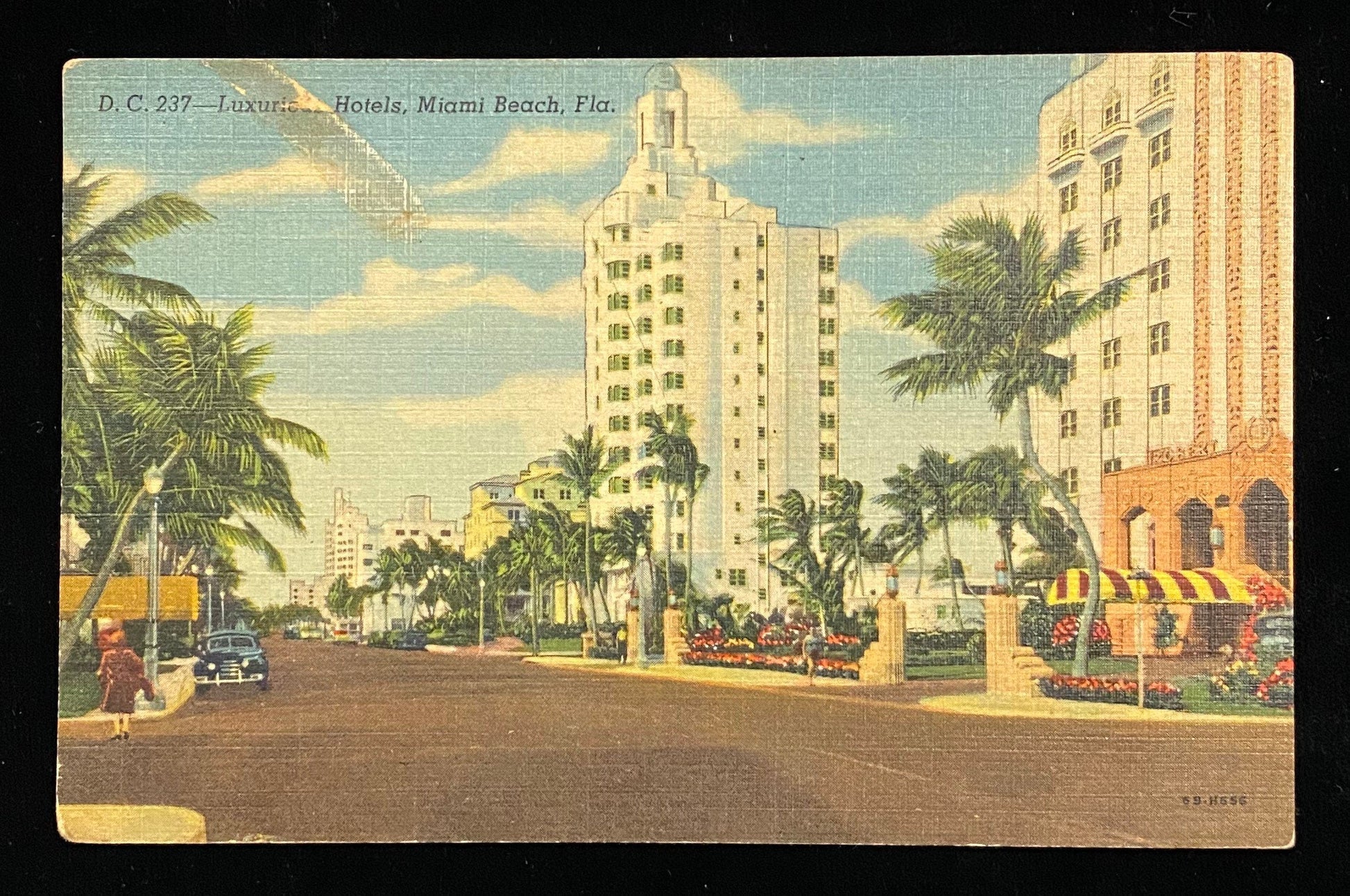 Luxurious Hotels, Miami Beach, Fla. - 1946 Linen Postcard