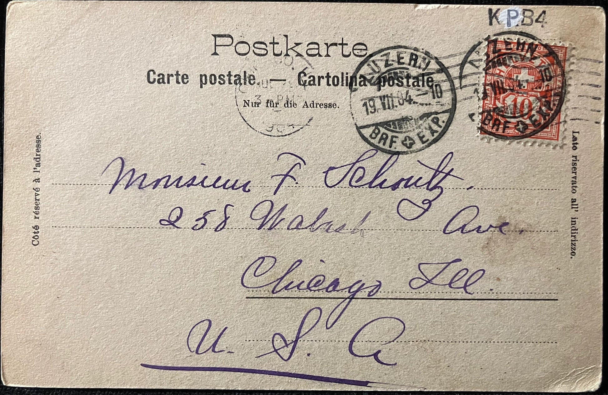 Mailed: Postmark in April of 1910 from Luzern, Switzerland with a orange Helvetia ten cent Swiss postcard