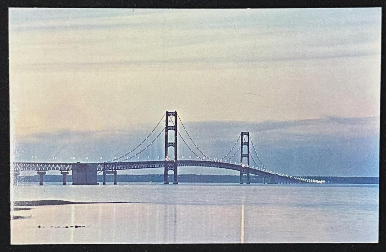 Mackinac Straits Bridge at Twilight, Michigan - Vintage Postcard
