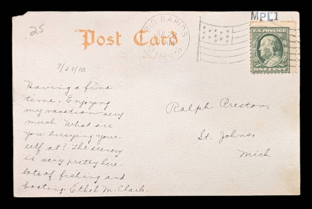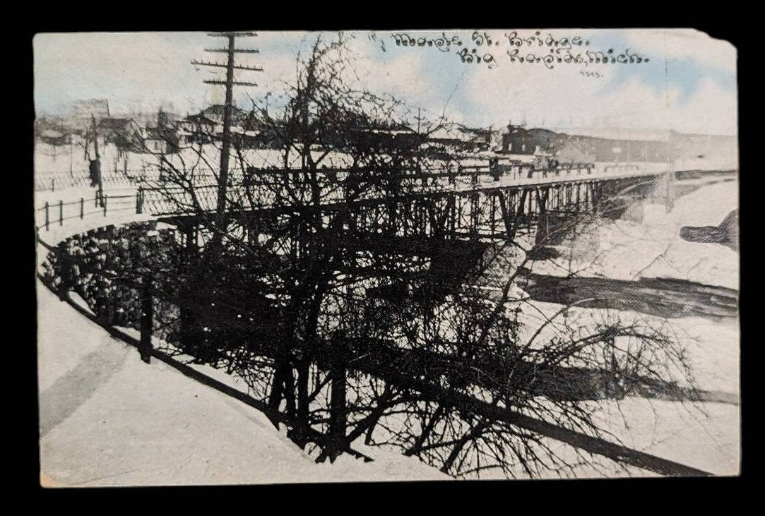 RPPC - Maple Street Bridge - Big Rapids, Michigan - Vintage Real Photo Postcard
