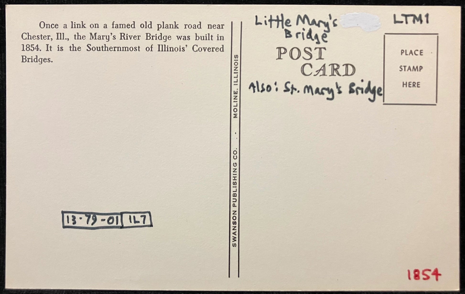 On front: Mary’s River Covered Bridge, Chester, Ill.