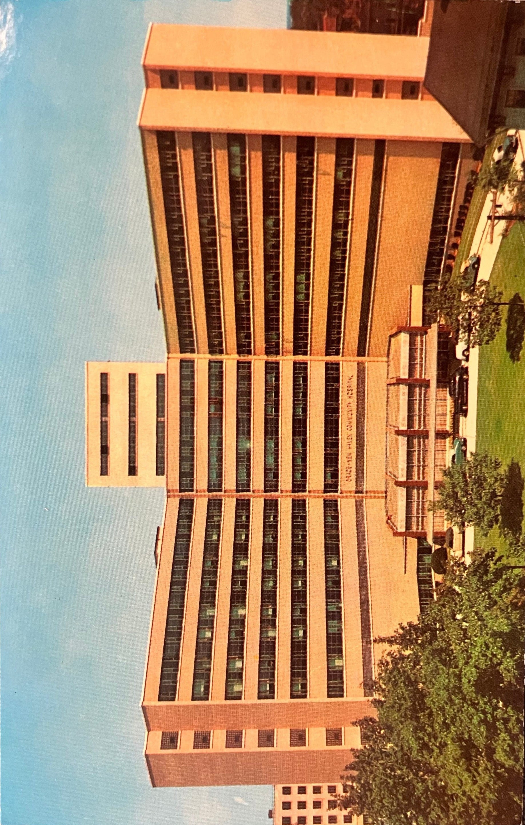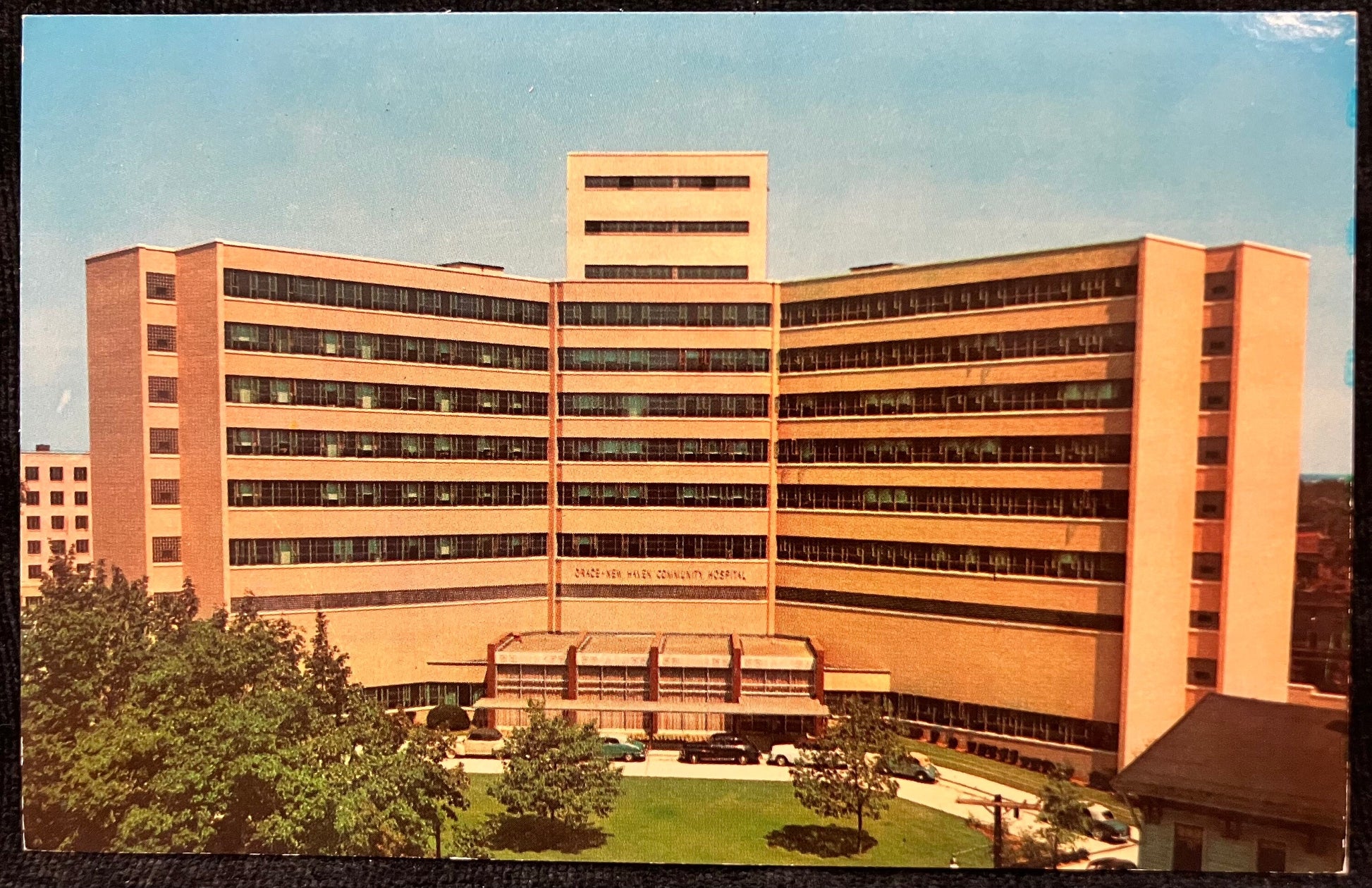 On front: An aerial photo of the Memorial Unit, Yale-New Haven Community Hospital in New Haven, Connecticut