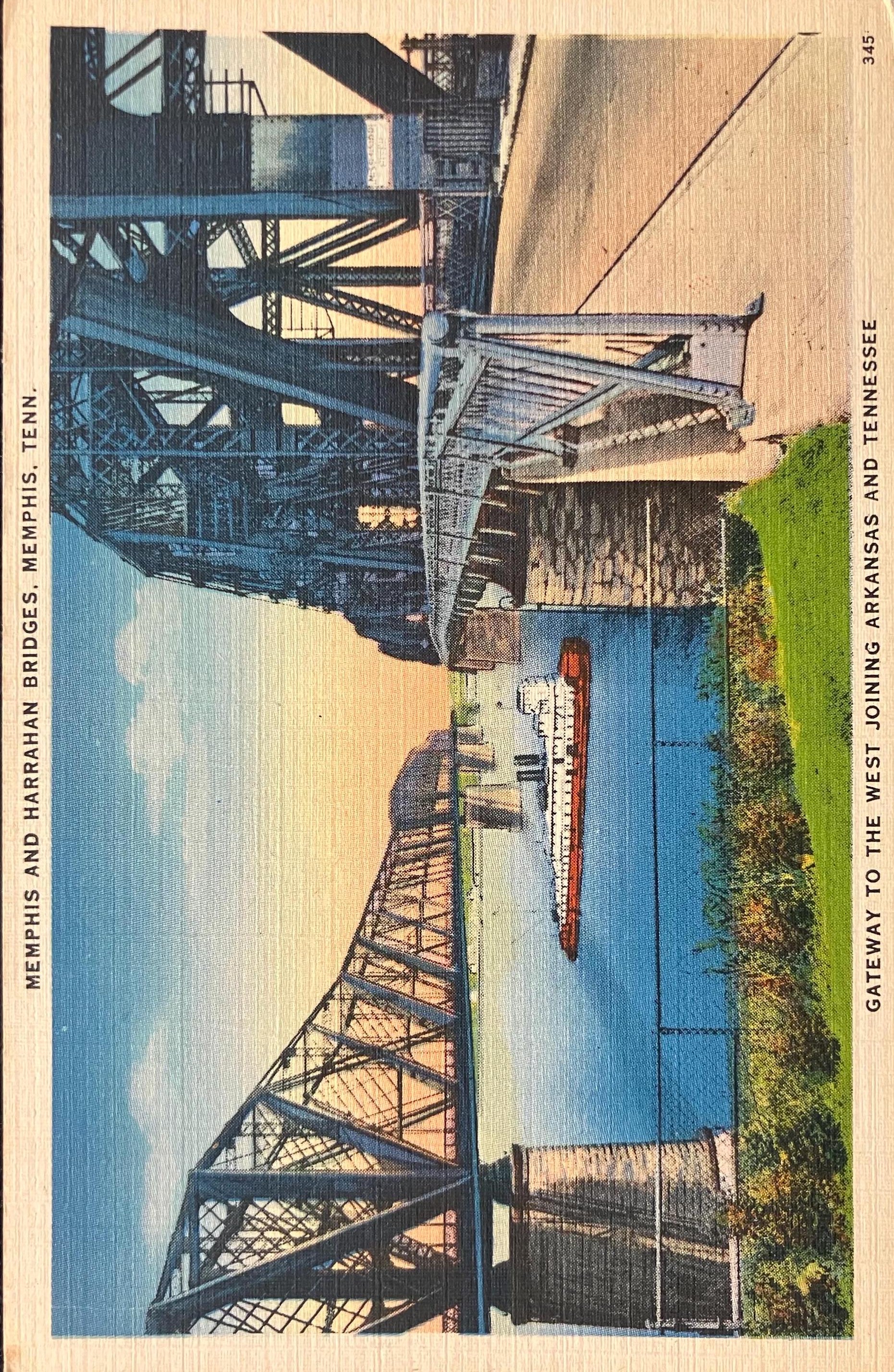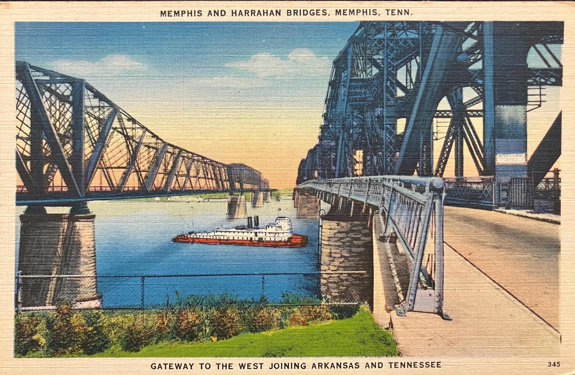 Front: Memphis and Harrahan Bridges, Memphis, Tenn. Gateway to the West Joining Arkansas and Tennessee