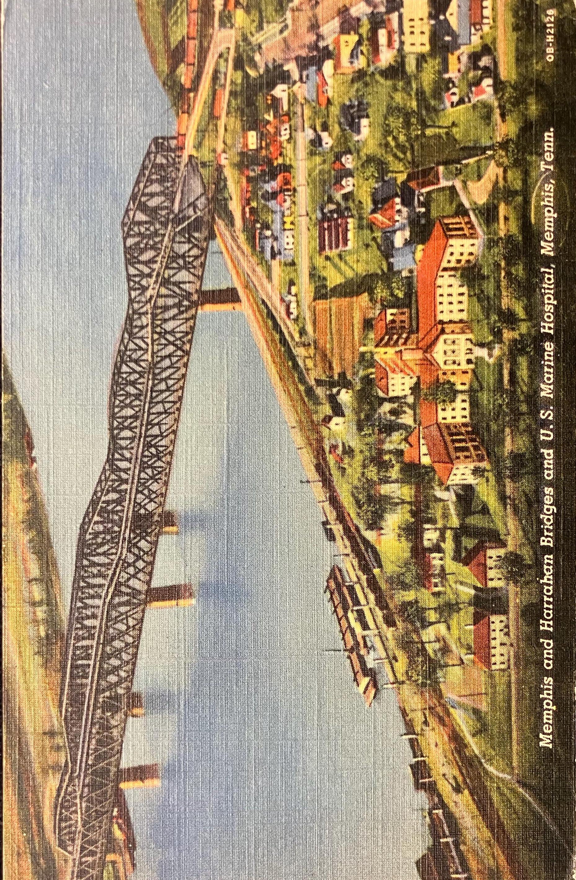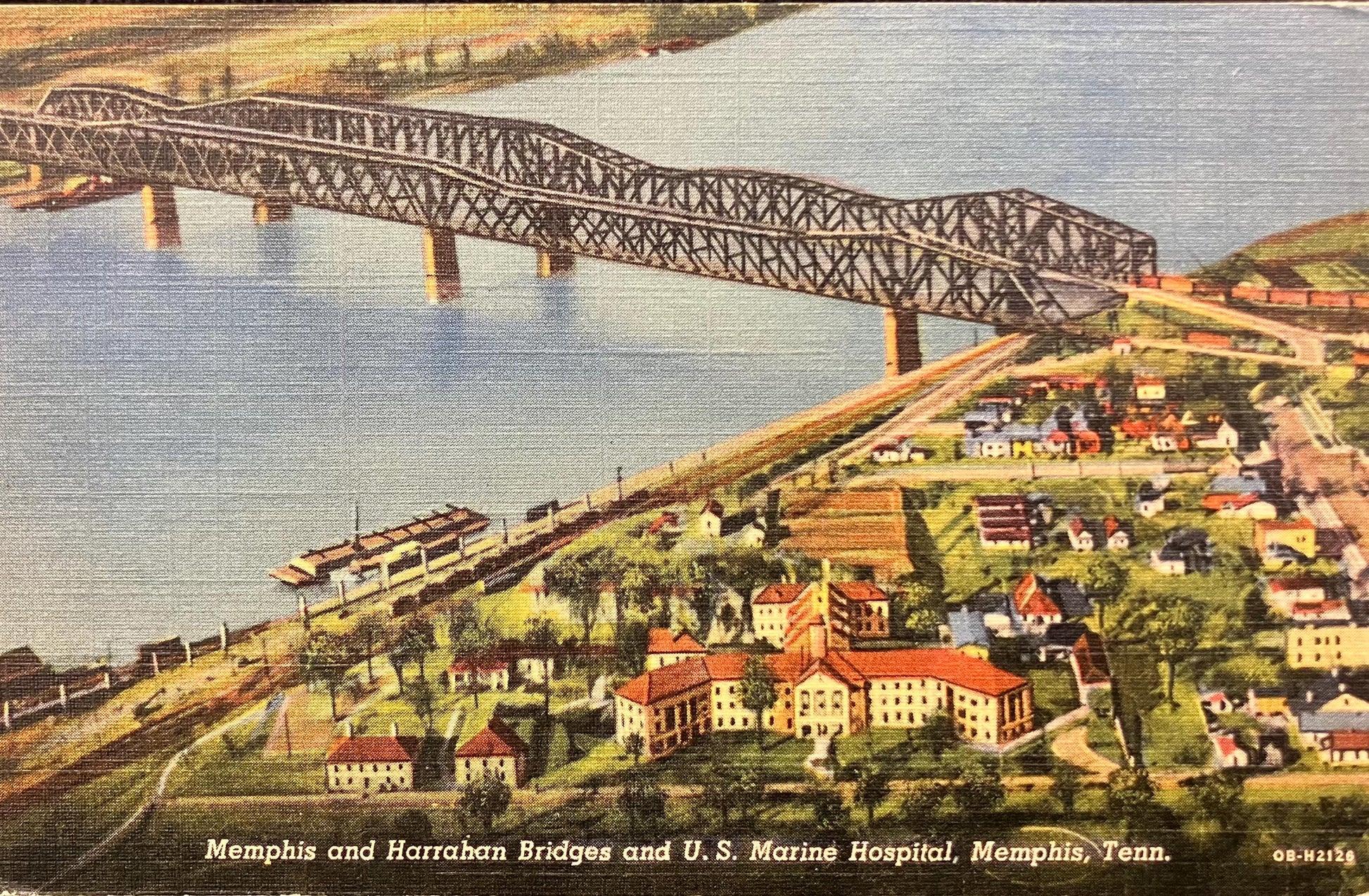 Memphis and Harrathan Bridges - U. S. Marine Hospital - Memphis, Tenn. - Vintage Bridge Postcard