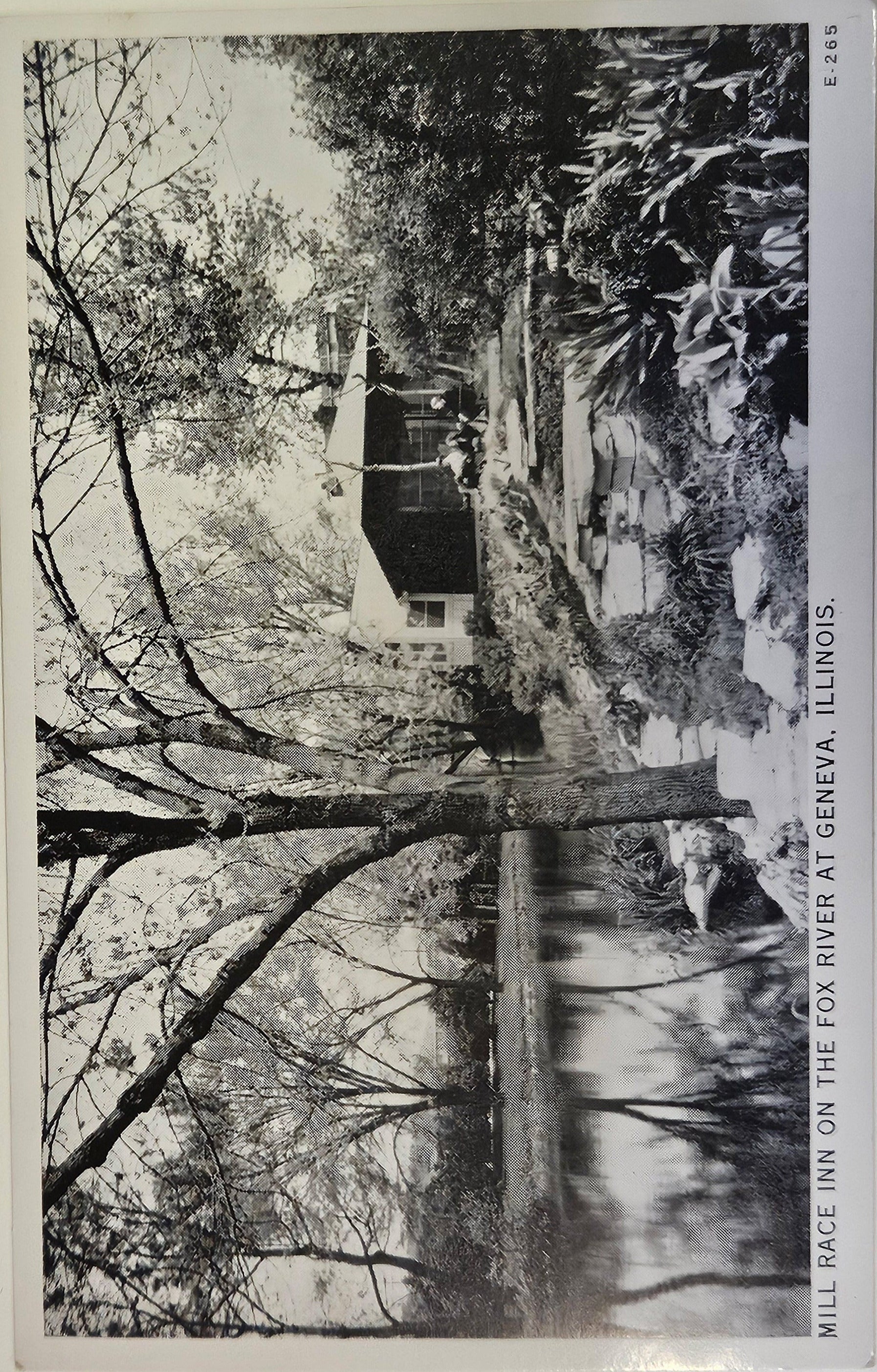 Mill Race Inn Fox River - Geneva Illinois - Black and White Photo postCard - opened as Tea Room in 1933 - Built in Historic 1846 Paper Plant